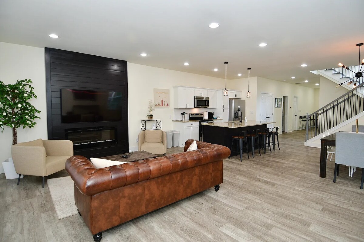 Fullkomið fyrir stóra hópa -Tímabundið húsnæði -Stutt gisting TRI LEVEL-Seconds from HWY FULLKOMIN STAÐSETNING gerir það að verkum að það er einstaklega þægilegt að keyra hvert sem þú vilt vera! 4 svefnherbergi: 3 uppi 1 niðri. Á aðalhæð er forye, eldhús og tvöföld stofa. Sjónvarp í öllum svefnherbergjum Á neðri hæð er svefnherbergi, bar, stofa, eldstæði og þvottahús með hálfu baði. Efri hæð er með þremur svefnherbergjum (þar á meðal húsbóndanum) og fullbúnu baðherbergi til viðbótar Samsvarandi skilríki og CC Req
