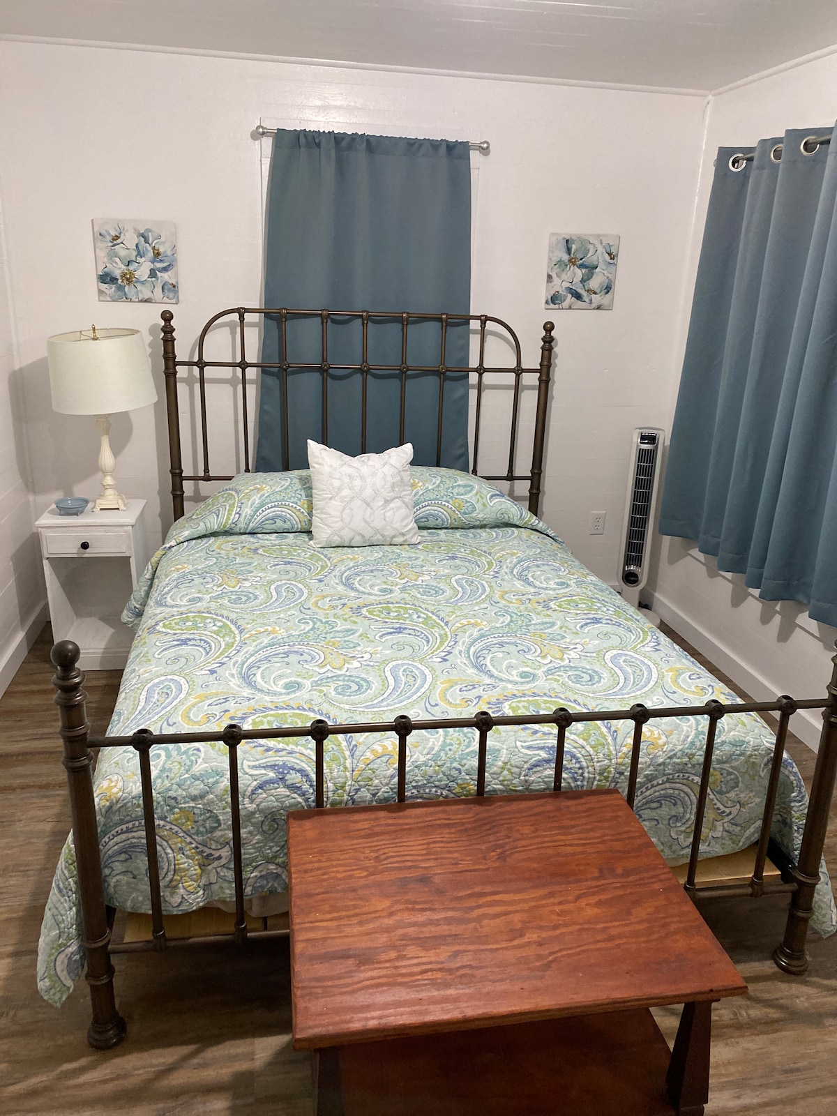 Slakaðu á og slappaðu af í þessari notalegu eins svefnherbergis íbúð með king-size rúmi, fullbúnu eldhúsi og þægilegri stofu með dagrúmi og ruslafötu fyrir aukið svefnpláss. Íbúðin er einnig með baðherbergi í fullri stærð með sturtu og baðkari. Opna skipulagið býður upp á fullkominn stað til að hvílast, borða og hlaða batteríin. Þessi íbúð býður upp á einfalda, stílhreina og þægilega eign hvort sem þú ert í stuttri ferð eða til lengri dvalar.