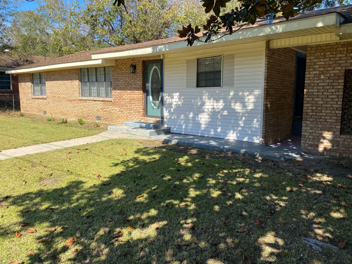 Velkomin, þið öll, í sæta bæinn okkar í suðrinu! Þú færð öll þægindi og þægindi á hóteli og eignin þín er fersk og hrein! Inngangurinn hjá þér er dyrnar efst á rampinum fyrir neðan bílaplanið. Ég mun gista í kringum eignina og vera til taks þegar ég verð í bænum. VINSAMLEGAST FARÐU YFIR og LESTU upplýsingarnar í appinu til að tryggja að ÞÚ fáir upplýsingar um blæbrigði og væntingar.