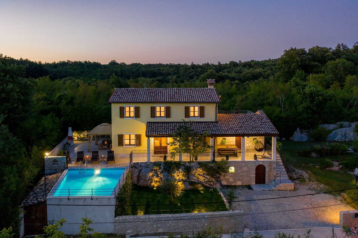 ATHUGAÐU: Aðeins bókanir frá laugardegi til laugardags eru samþykktar. Hefðbundið ístrískt hús í hjarta Istria í smáþorpinu Mrkoči, umkringt ósnortinni náttúru. Húsið var gert upp að fullu árið 2020 með því að nota aðeins náttúruleg efni og virða menningararfleifð Istriu. Falleg sundlaug stendur upp úr í rúmgóðum garðinum. Tekið var vandlega tillit til allra smáatriða við skipulagningu hússins.