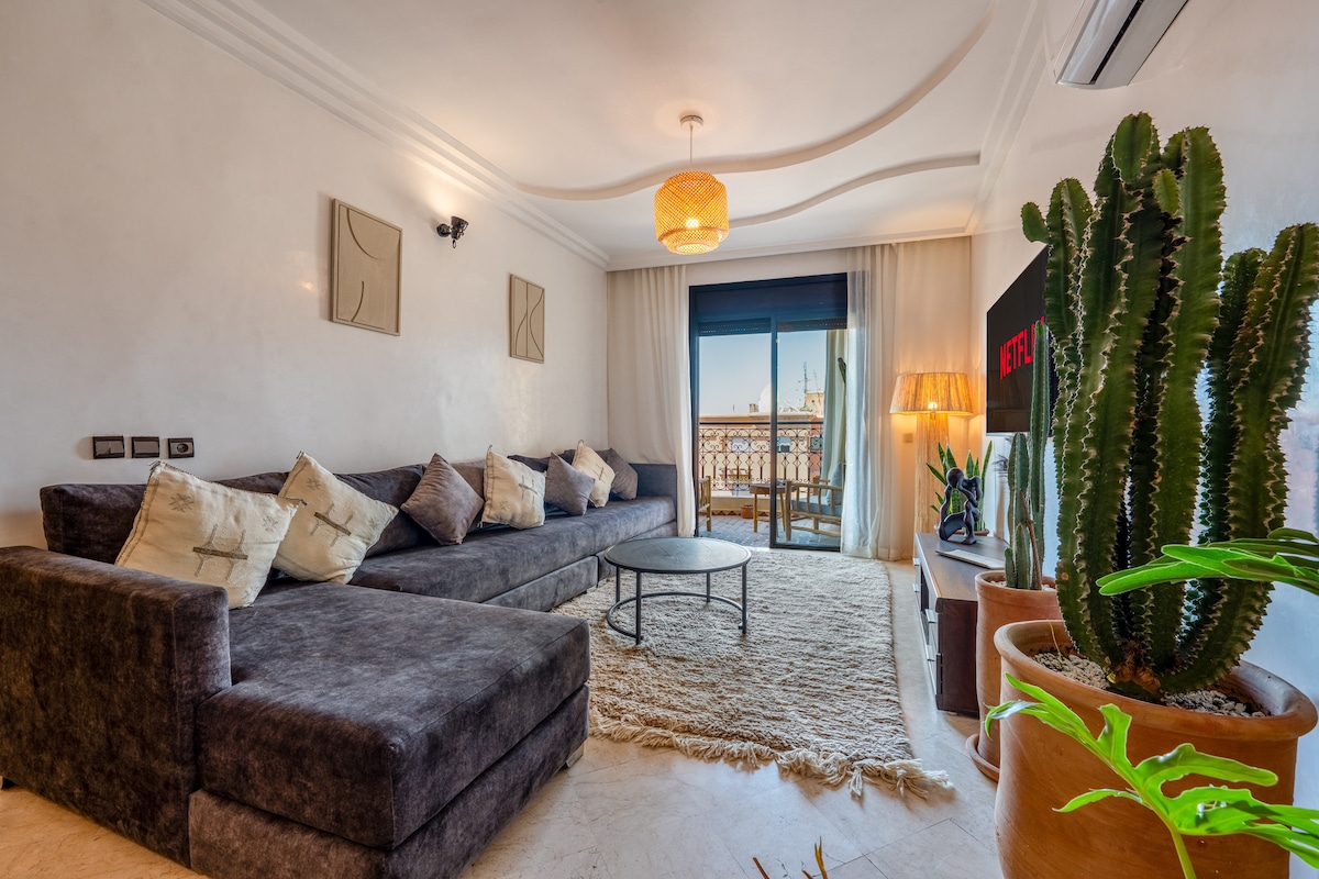Staðsett í hjarta hins virta ferðamannasvæðis Marrakech Golf City. Kynnstu þessari lúxusíbúð með einstöku útsýni yfir golfvöllinn, sundlaugina og tignarleg Atlas-fjöllin. Íbúðin hefur verið fallega innréttuð með nútímalegum, bóhem og beldi-chic stíl. Hún er fullbúin og býður upp á fín þægindi Húsnæðið snýr að atlasfjöllunum, það er mjög vinsælt vegna kyrrláts og öruggs umhverfis og nálægðar við miðborgina