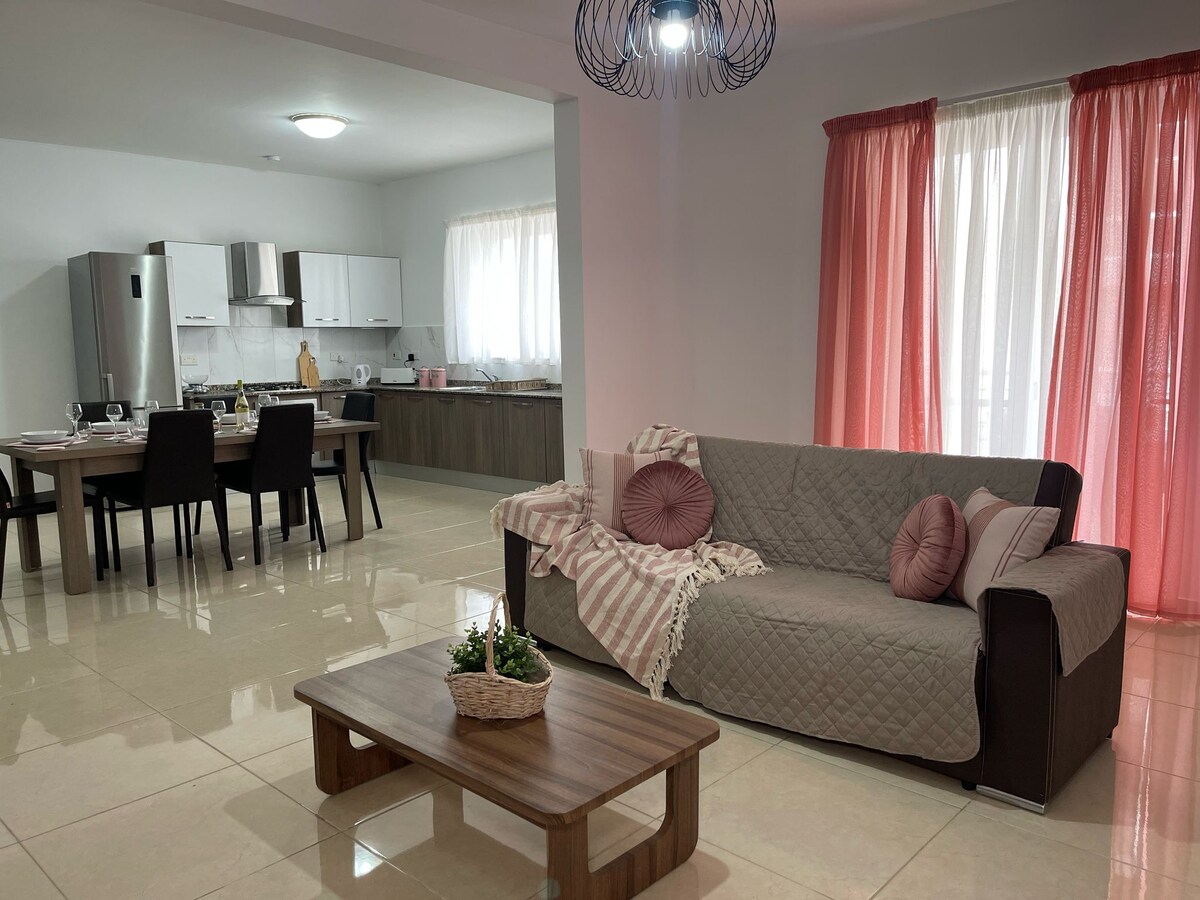 Íbúðin er vel staðsett á milli tveggja inntaka Marsaskala-flóa og er í aðeins 5 mínútna göngufjarlægð frá göngusvæðinu við sjóinn, veitingastöðum, verslunum og strætisvagnastöðinni og í 10 mínútna göngufjarlægð frá sundsvæðunum og ströndunum í St Thomas Bay. Íbúðin er með 2 svefnherbergi, 2 baðherbergi, sambyggt eldhús og stofu, sólríka verönd, loftræstingu, þráðlaust net, Netflix sjónvarp og þvottahús. Léttur morgunverður er einnig innifalinn. Bílskúr hinum megin við götuna er einnig í boði án endurgjalds fyrir einkabílastæði.