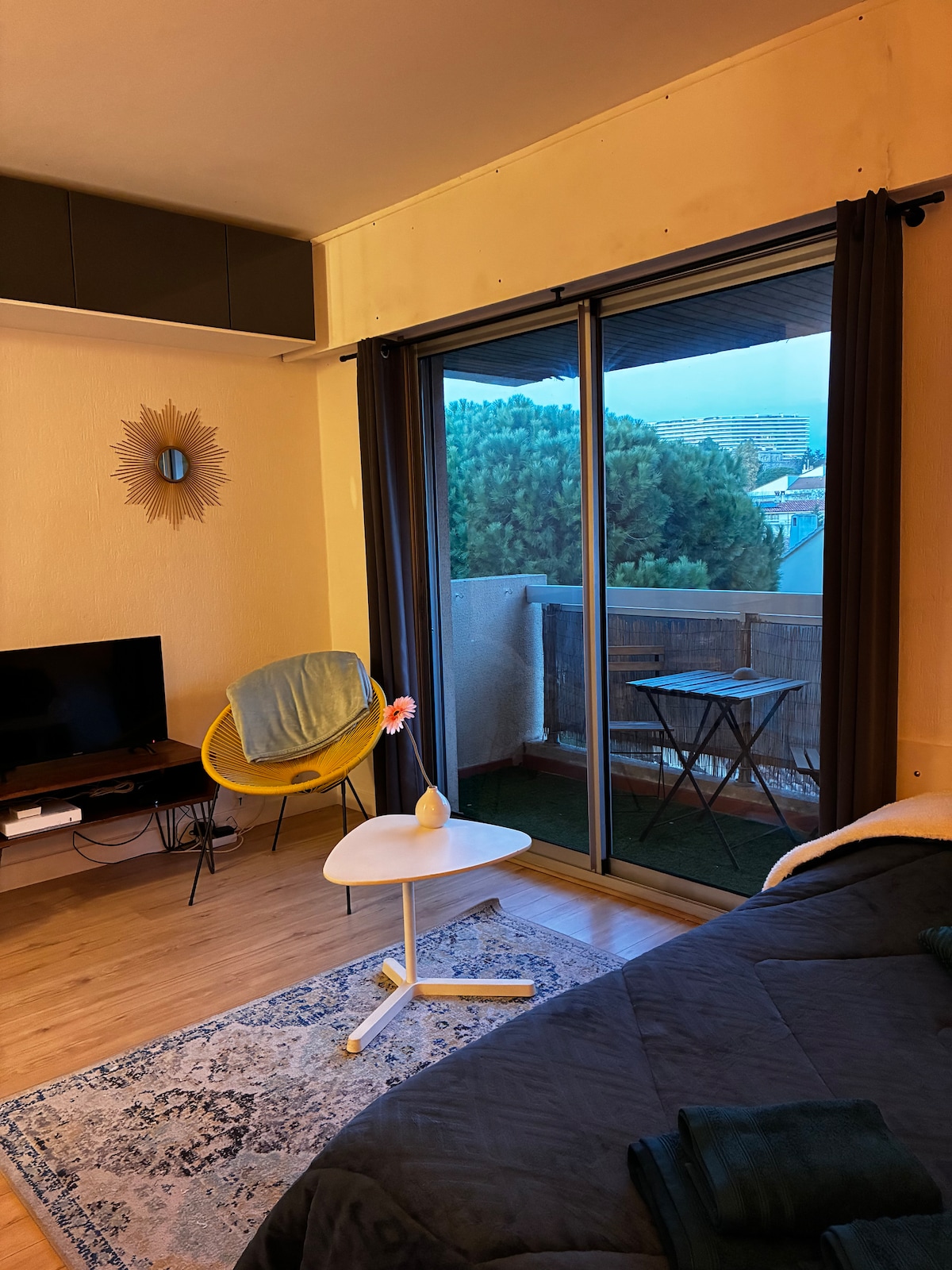 Friðsælt athvarf við sjóinn á Kennedy Corniche. Útsýni yfir Benedetti garðinn, rólegt og ferskt. Staðsett hálfa leið á fæti (5 mínútur) að Katalónsku ströndinni og víkinni Malmousque. Það eru öll þægindi í kring. Rútan (83) fer fram við rætur byggingarinnar í átt að gömlu höfninni þar sem Prado er. 82s strætó frá Katalóníu mun taka þig til St Charles stöðvarinnar (og skrúfur og öfugt). Flott matarhlið: Le Peron, L 'net, Passedat. Og njóttu fallegu sólsetursins!