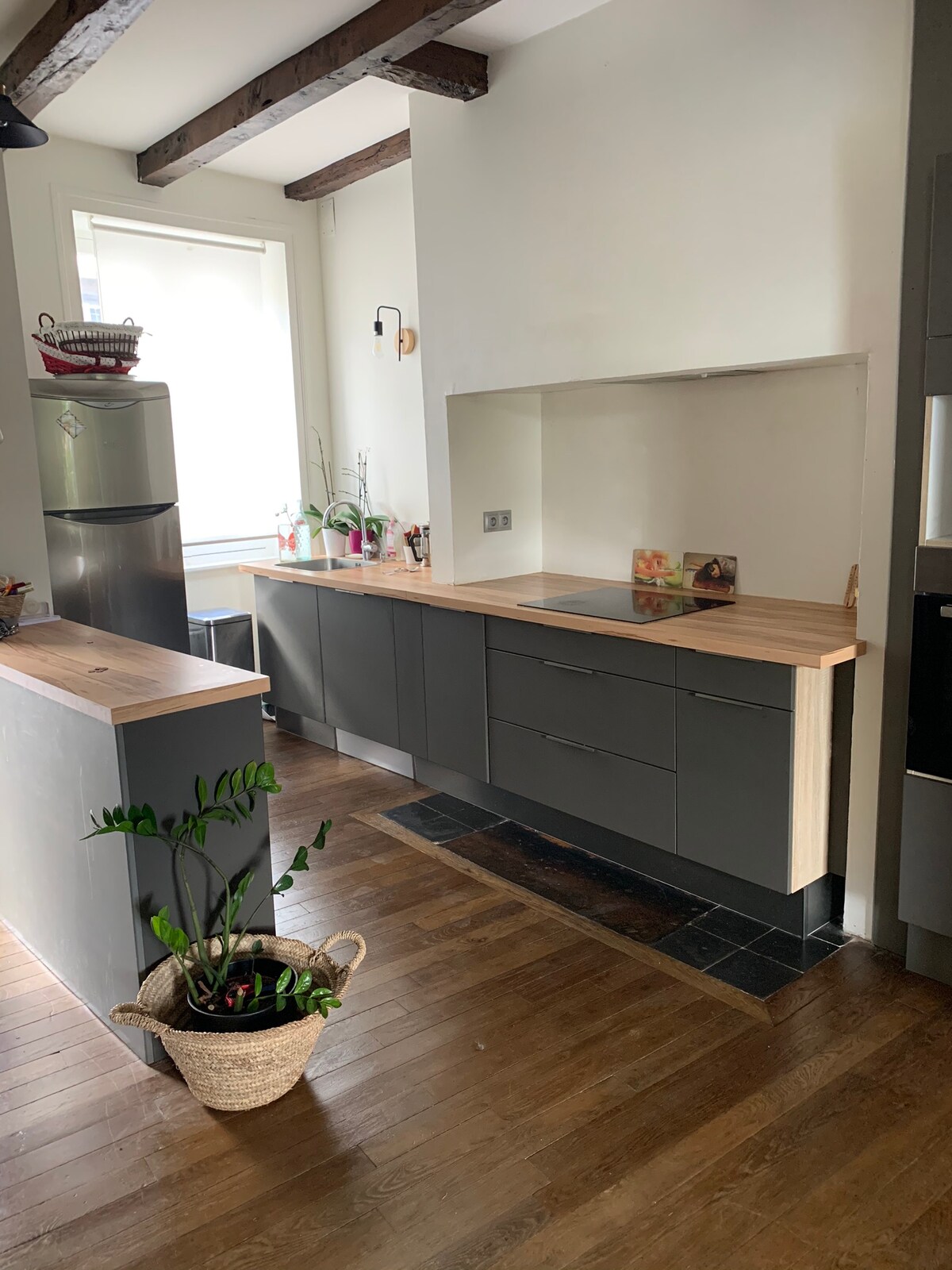 Þorpshús með útsýni yfir einkagarð með plancha, fyrir 9 fullorðna, þar sem gömlu og nútímalegu kemur saman fyrir ánægjulega dvöl fjölskyldunnar. Nálægt öllum þægindum samanstendur það af: Á jarðhæð : fullbúið eldhús opið stofunni og lítilli stofu, þvottaherbergi, salerni. Efst: 4 svefnherbergi,2 baðherbergi, þar á meðal svefnherbergi með sjálfstæðu sturtuherbergi. Eftirlætiskjallarinn okkar er kjallarinn þar sem hún tekur á móti fótboltaspilinu sínu. Sjáumst fljótlega í eigninni okkar