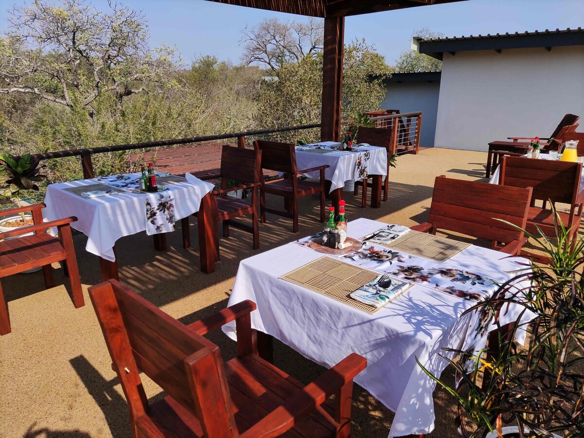 Woodpecker Lodge er staðsett innan 680ha Hoedspruit Wildlife Estate í smábænum Hoedspruit, Limpopo. Woodpecker Lodge er meðal stórra bushveld-trjáa með útsýni yfir runnann og fjöllin. Þakið gefur því þessa raunverulegu „bushveld“ tilfinningu. Þetta er eitt af fjórum tveggja manna herbergjum svo að hámarksfjöldi okkar er allt að 8 gestir sem bjóða upp á rólegt og afslappað frí. Athugaðu að við erum einungis áhyggjuefni fyrir „gistiheimili“ - sjálfsafgreiðsla er ekki leyfð.