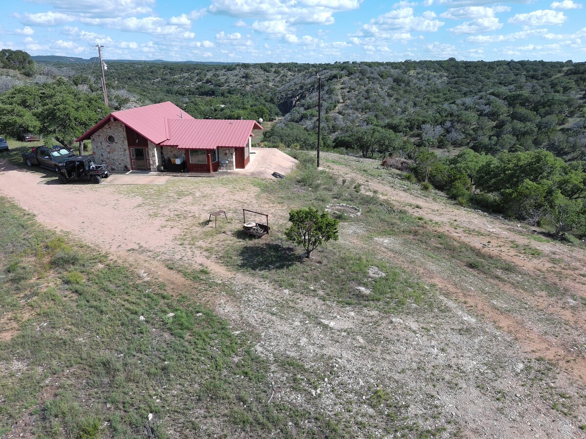 Enjoy hill country views on a working cattle ranch where wildlife roam free! Serenity Cabin combines rustic surroundings with modern comfort. Professionally cleaned & maintained. 4 full beds + sofa. Kitchenette with full refrigerator. Cedar Cabin on 40 Acres + Front Porch +Air Conditioning + Ceiling Fans + WIFI + A/C + Screen Porch + Smart TV + DVD+ Pavilion+ Comfy Beds + Seasonal Pond +Sunset Views! Castel - 10 min Mason - 20 min Llano - 20 Fredericksburg - 40 min Your cabin awaits!