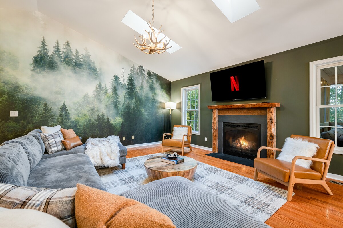 Njóttu kaffibolla á þilfarinu í fjallshlíðinni, eyða kvöldunum í að njóta eldgryfjunnar á meðan þú grillar kvöldmatinn eða slakaðu á í heita pottinum. Inni er gasarinn með snjallsjónvörpum eða spilaðu í leikherberginu! Þetta er nýmyndað heimili með afgirtum garði fyrir pottaþjálfaða hunda með gæludýragjaldi! Við erum inni í hliðum dvalarstaðarins í Massanutten og bjóðum upp á skíði, sleða, ævintýragarð, ferðavagna, golf, hestaferðir, vatnagarð innandyra, veitingastaði við fjallshliðina!leið, ÓKEYPIS SUNDLAUG!