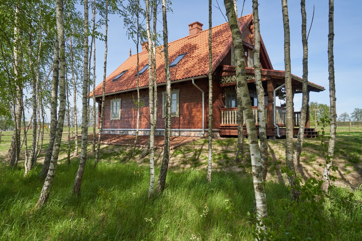 Welcome to our year-round cottage in the center of Mazury Garbate - a region with the cleanest air in Poland. We provide relaxation far from the city buzz and hustle, in a peaceful area, in close contact with nature. The cottage constitutes a perfect starting point for individuals valuing active forms of leisure - charming bike trails, the kayak trips and walking routes.Sauna and garden hot tub on-site (with a stay of a minimum of 3 nights - 1 session in the sauna or hot tub exclusively - free).