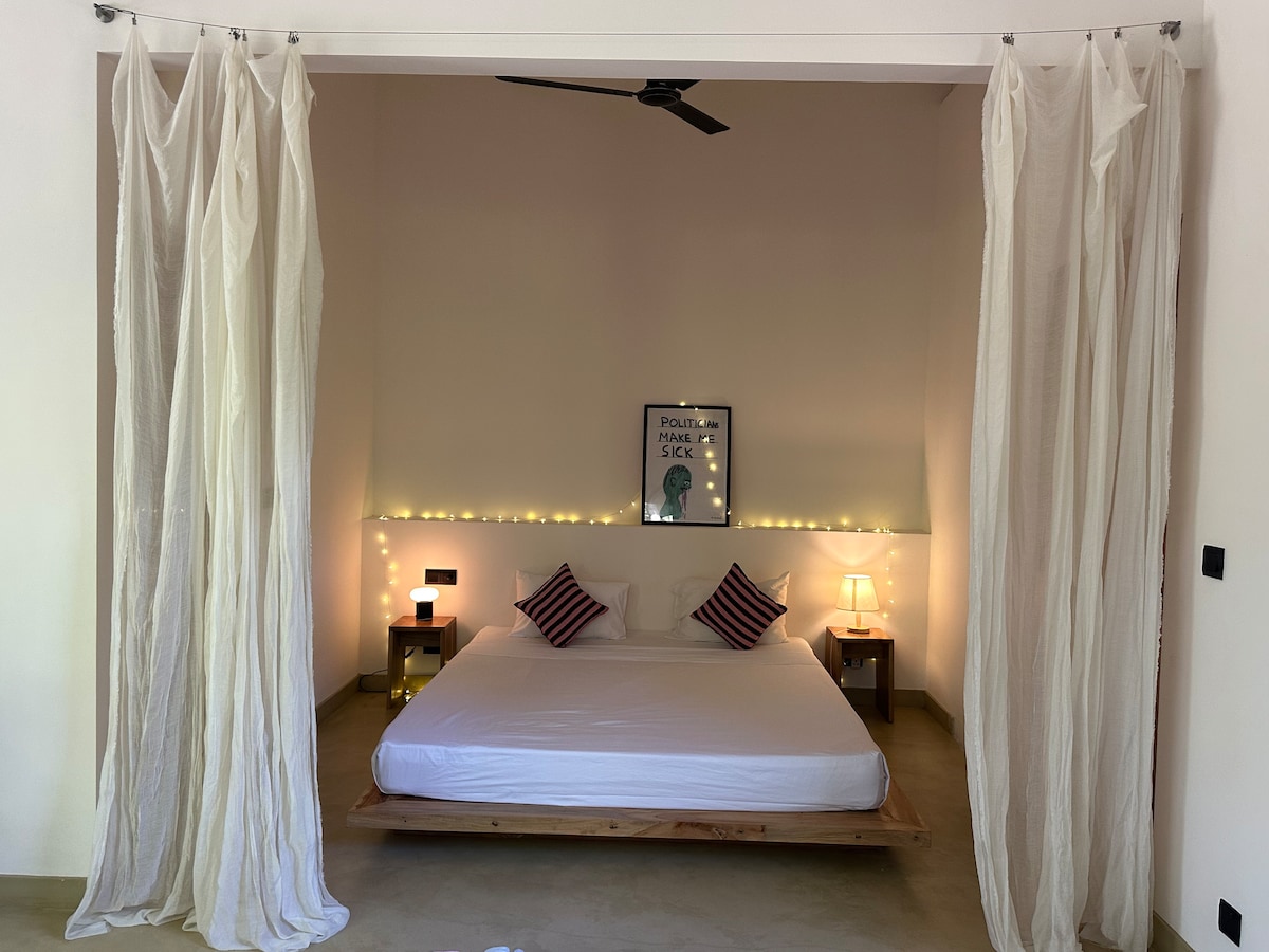 Sunyata Nilwella is a 3-bedroom, 3-bathroom boutique beach house set within its own private cove, overlooking a small island and a secluded beach just steps away. Hidden in the tree canopy and sharing the shade of a Bodhi tree from the monastery next door, the home feels calm and deeply private. Fully equipped and thoughtfully designed, Sunyata is a peaceful sanctuary minutes from the cafés, surf, and energy of Hiriketiya Beach.