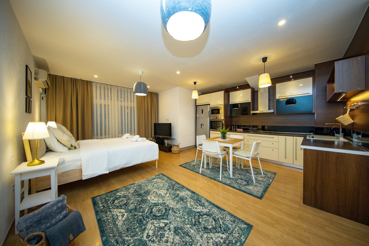 Láttu fara vel um þig í þægilegu, nútímalegu stúdíói okkar í hjarta Prishtina. Þessi eign hentar þér fullkomlega til að slaka á eftir þreytandi dag eða brjálaða nótt. Það er nýlega innréttað sem hentar öllum þörfum þínum og það er þægilega staðsett í 10 mínútna fjarlægð frá Skenderbeu Boulevard, rétt fyrir aftan Þjóðleikhúsið. Stutt ganga verður að Soma Book Station og Dit’ e Nat’, tveimur af vinsælustu áfangastöðum Prishtina, þar sem þú getur notið þekktra macchiatos á staðnum og fleira.