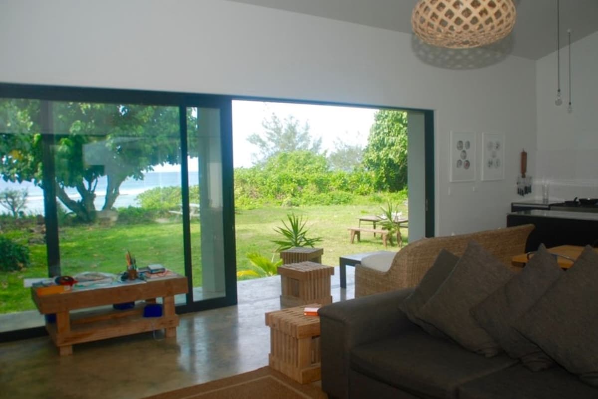 Þetta einstaka gámahús er staðsett við ströndina í Matavera og rúmar allt að 9 manns en það er nægt pláss fyrir alla. Rúmgóða og opna stofan opnast út á stóra verönd sem er fullkomin til að leika sér og slaka á. Njótið fallegu strandlengjunnar við Matavera þar sem sólarupprásin er stórkostleg. Við lágflóð verður lagúnan að leikvangi úr klettalaugum sem býður upp á margar klukkustundir af skoðunar- og uppgötvunartækifærum. Þetta er fullkominn orlofsstaður fyrir alla fjölskylduna.