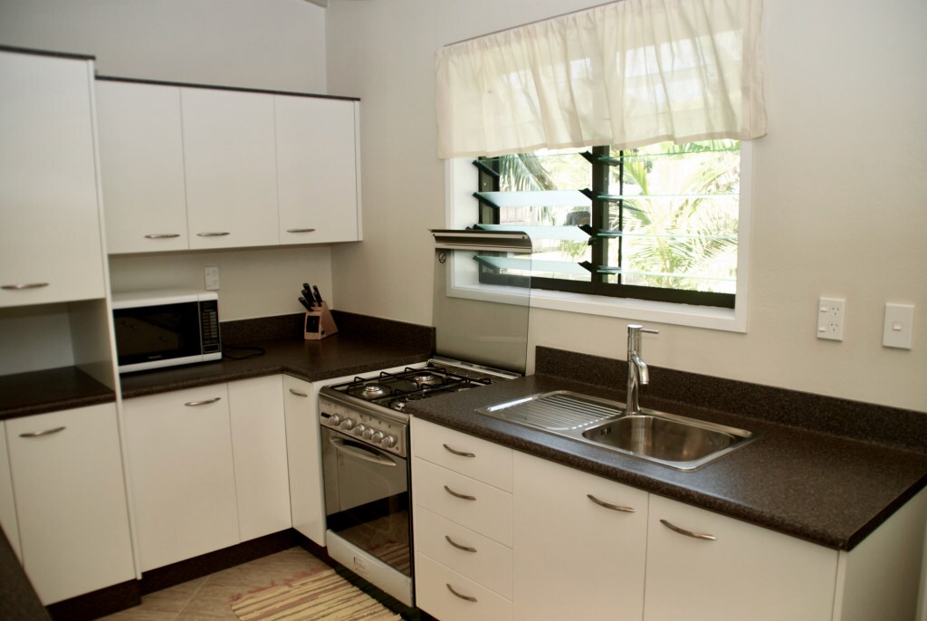 Njóttu fegurðarinnar á hitabeltiseyjunni okkar í skugganum á fjöllunum + aðeins nokkurra mínútna fjarlægð frá ströndinni. Skoðaðu eyjuna fótgangandi, á hjóli eða í bíl, gönguferðir um fjöllin, gönguferðir í dali, sund og snorkl, köfun eða róðrarbretti í túrkísku vatni laguneytisins eða gerðu einfaldlega ekkert og njóttu Litlu paradísarinnar. Morgunmatur í evrópskum stíl með hitabeltisgleði og ferskum eggjum úr kjúklingnum okkar fylgir svo að þú passir fyrir spennandi daginn þinn (nema lau) Biddu um flutning á flugvellinum.