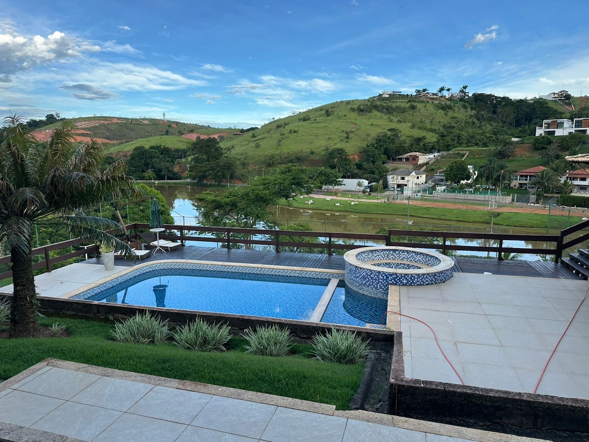 Notalegt hús með 5 svefnherbergjum, 15 manna rúmi, 3 baðherbergjum , sundlaug, yfirbyggðum svölum, stórri stofu og fullbúnu eldhúsi! Við erum staðsett á forréttinda svæði fyrir að vera nálægt (5 mín bíll) viðburðarstöðum eins og Terrazzo, São Pedro Station, mjög auðvelt aðgengi (15 mín á bíl) frá expominas og 3 mínútur frá UFJF! Hverfið er rólegt og öruggt. Bakarí, markaður og verslunarmiðstöð í nágrenninu. Við leitum að kyrrlátum gestum þar sem það er fjölskyldustemning. Það verður ánægjulegt að taka á móti þér á heimili okkar!