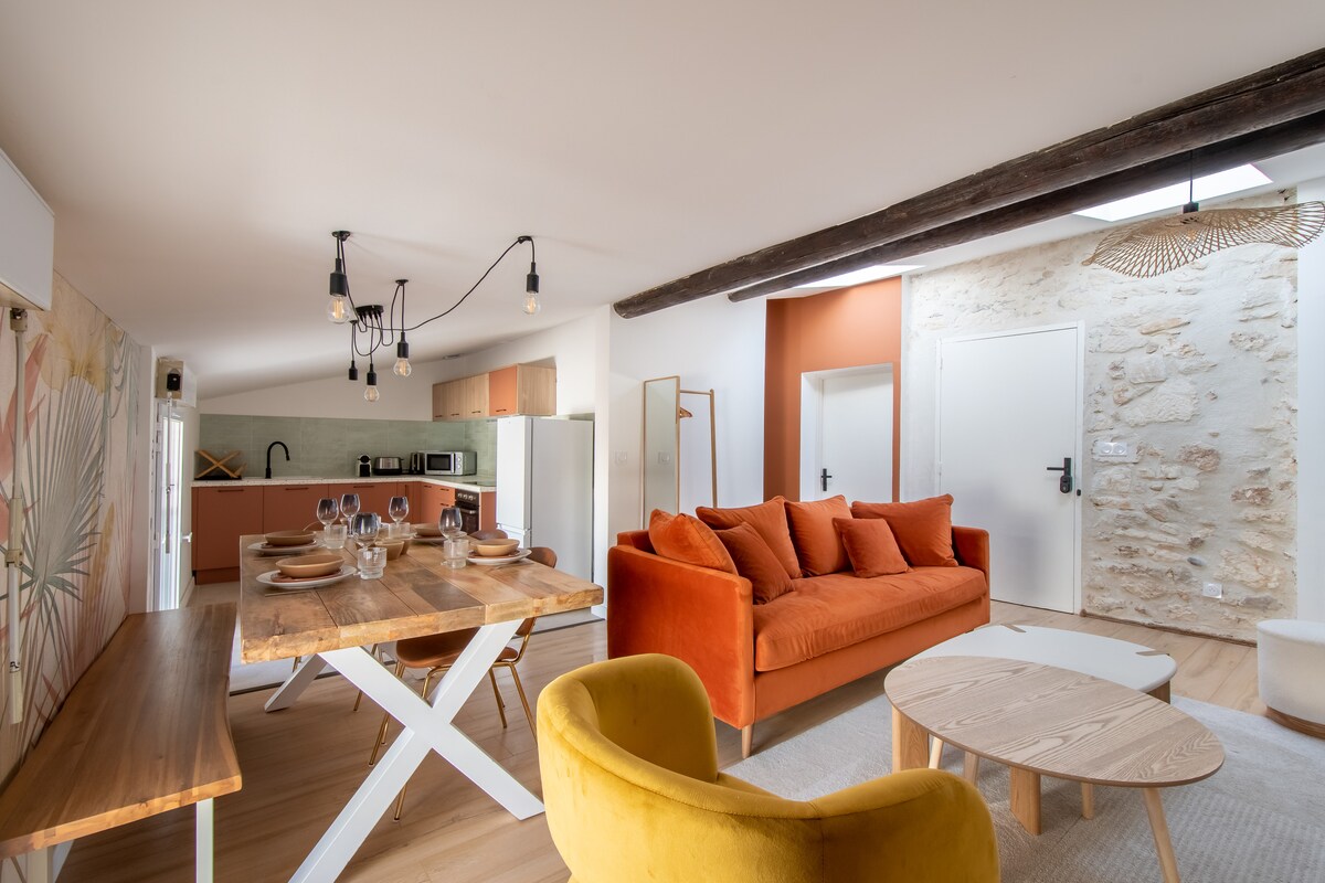 ✨ LOFT 118 m² – Charme & Confort entre Montpellier et la Mer ✨ Bienvenue dans notre superbe loft climatisé de 118 m², un espace authentique, élégant et spacieux, niché dans un ancien mas viticole entre Montpellier et la mer. 🏡 Un lieu unique où le charme de l’ancien rencontre le design moderne, offrant un confort absolu pour un séjour en famille, entre amis ou pour un déplacement professionnel.