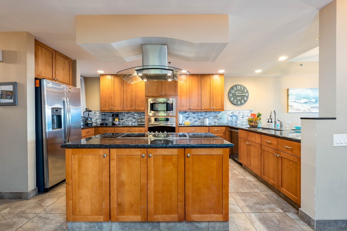 Njóttu útsýnis yfir hafið, fjall, strönd og sólsetur allt árið um kring á Hale Meli (stutt fyrir „Hale Mahina Meli“ eða „Honeymoon House“ á Havaí), íbúð á efstu hæð með frábærum hönnunarinnréttingum og hágæða þægindum. Íbúðin er vel staðsett í Kihei og er hinum megin við götuna frá einni af bestu ströndum Maui og er í göngufæri við veitingastaði, verslanir og matvöruverslanir. Það er einnig fullkominn staður til að skoða restina af Maui, að vera miðsvæðis á eyjunni.