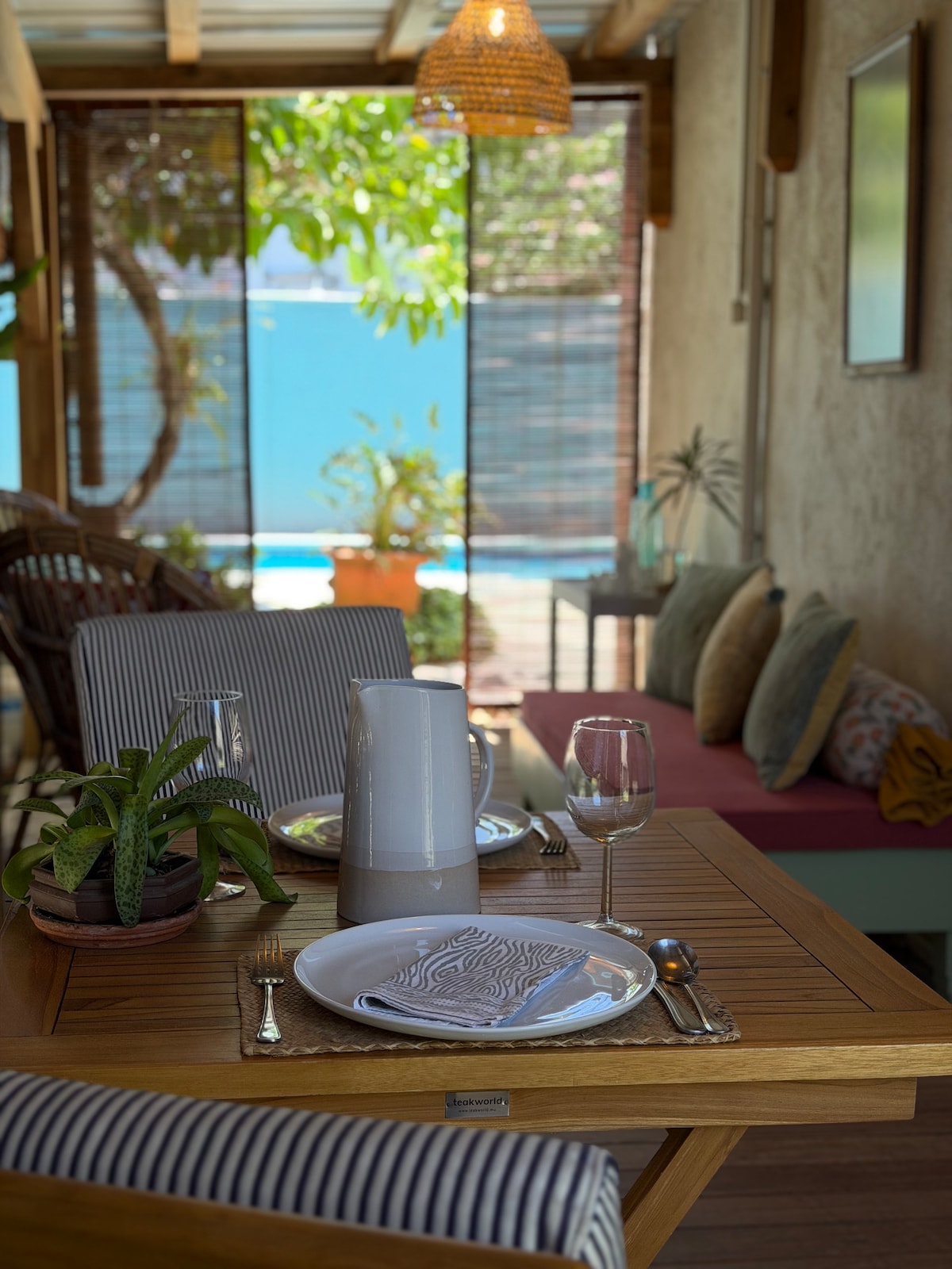 Bjart, sjálfstætt stúdíó í húsi með sundlaug og garði. Staðsett í enda blindgötu, nálægt þægindum. • 900 metrar að ströndinni (12 mínútna ganga) • Í næsta nágrenni við verslanir og veitingastaði • Fullbúið eldhús, loftkæling, hratt þráðlaust net • Rúmföt þvegin af gestgjöfum þínum án aukakostnaðar • Gjaldfrjáls bílastæði á staðnum