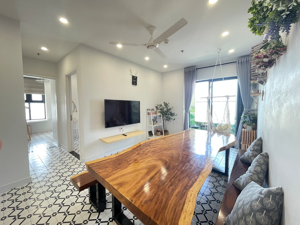 - Gisting í dvalarstaðastíl, dag frá degi í hjarta draumkenndrar Hue-borgar. - Við höfum búið til íbúðina sem er bæði minimalísk, fáguð og nútímaleg. Á bak við dyrnar er notalegt, hlýlegt og þægilegt rými. -Heimilið en ekki bara heimilið er rétti staðurinn til að „slappa af“ og „njóta“ - Íbúðin er með 2 svefnherbergi, stofu, eldhús, salerni, baðherbergi, vagn +þurrkherbergi með bancon, hurðarlæsingu, talstöðvakerfi, nálægt lyftunni sem þægilegt er að færa. - Aðeins 5p að Trang Tien brúnni, West Street, Vincom,,,