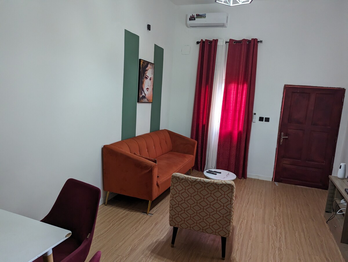 Þetta JTK Residence heimili er á 1. hæð, hreint, nútímalegt og tilbúið til að taka á móti þér. Örugg staðsetning okkar er á móti Bicec Biyem Assi. Tarred access to the Residence. 30 mín frá flugvellinum, 5 mín frá ferðaskrifstofum, 15 mín frá miðborginni, 5 mín frá bönkum, 5 mín frá Acacia markaðnum með nokkrum matvöruverslunum. Þetta er tilvalinn staður fyrir gesti sem vilja hlaða batteríin, slaka á í rólegu, rúmgóðu og þægilegu umhverfi.