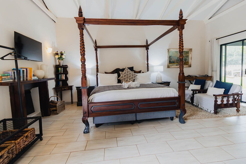 Slakaðu á og slakaðu á í þessu rólega og stílhreina rými. The renovated Lowveld farmhouse is the place to take it easy. The wide stoep looks into a lush, mostly indigenous subtropical garden. Áveitusíkið í nágrenninu gefur friðsælan bakgrunn þegar vatnið gnæfir yfir. Allt á lóðinni, allt frá matnum sem við ræktum til þess hvernig við búum, vinnum og framleiðum rafmagn, byggir á því að vera umhverfislega sjálfbær. Við erum algjörlega utan alfaraleiðar, hvorki rafmagns- né vatnsskurður!