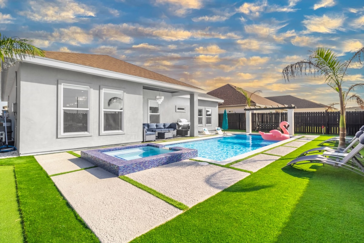 Heimilið mitt er komið aftur og endurbyggt, fallegt og fullkomlega útbúið fyrir þægindi og afþreyingu. Það er með glæsilegt 100 tommu sjónvarp á aðalsvæðinu, sjónvarp í öllum svefnherbergjum og notalegt útieldhús við hliðina á afslappandi sundlaug. Þú ert á frábærum stað, steinsnar frá verslunum, matvöruverslunum og vinsælum veitingastöðum sem bjóða bæði lúxus og þægindi á einum ótrúlegum stað til að búa á. Í 8 mínútna fjarlægð frá sjúkrahúsum, flugvelli, verslunarmiðstöð og miðbænum. Í 5 mínútna fjarlægð frá McAllen-ráðstefnumiðstöðinni
