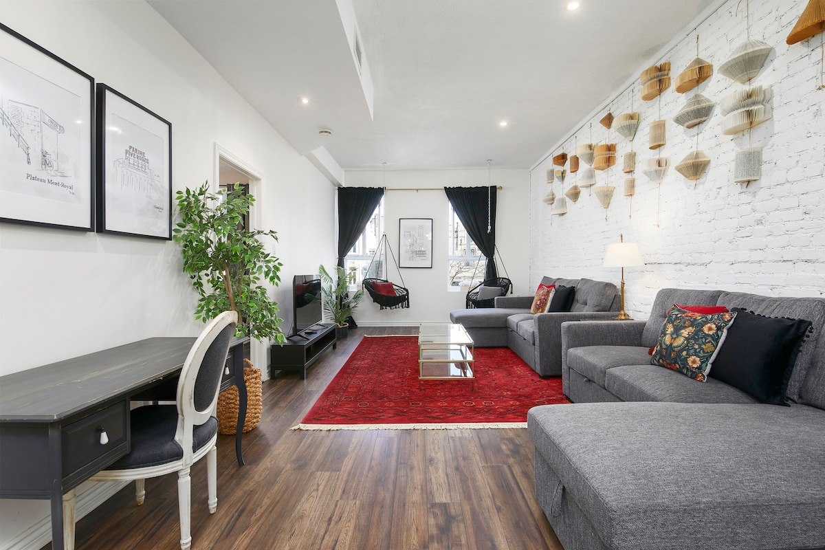 Experience Montreal from our 1,850 sq. ft. Heritage Greystone loft. This 3rd-floor sanctuary in the Plateau features an open-concept layout, brick walls, and a rare find: 3 spacious bedrooms, each with a private en-suite bathroom. Perfect for families or groups seeking luxury and privacy in a 100% walkable neighborhood. Comfortably accommodates your group with extra sofa-beds. Winter Promotion Take advantage of our winter promotional discounts!