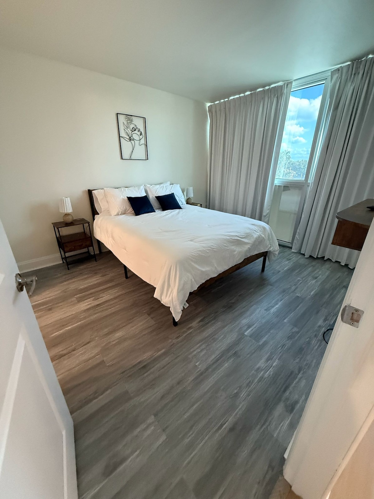 Gaman að fá þig í Luxe Living getaway! Upplifðu fullkomna blöndu af þægindum og fágun í þessari Executive King svítu með borgarútsýni sem staðsett er í hjarta miðbæjar Fort Myers. Þessi nútímalega íbúð með 1 svefnherbergi er með mjúku king-rúmi og sófa sem hægt er að draga út í queen-stærð sem er tilvalinn fyrir pör, fagfólk eða litlar fjölskyldur. Njóttu útsýnis yfir borgina, fullbúins eldhúss og aðgangs að úrvalsþægindum steinsnar frá bestu veitingastöðum, verslunum og afþreyingu í Fort Myers.