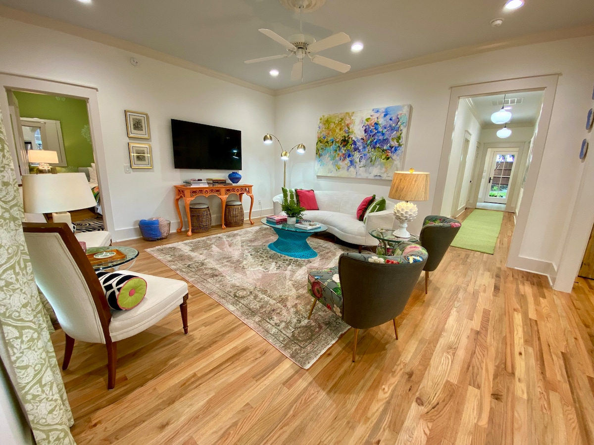 AirBnB “Guest Favorite!” One block from one of the most fabulous Historic downtowns in Texas! Sweet special place for your special getaway! You will love this charming cottage for so many reasons- location of course but then you will love the details that make this place so comfy-2 king beds, 1 queen,1 twin +sleeper sofa, comfortable living w 55" smart tv wifi, well equipped kitchen, spacious dining area plus cozy kitchen nook, bonus room, laundry & FABULOUS front & back stone patios & Firepit!