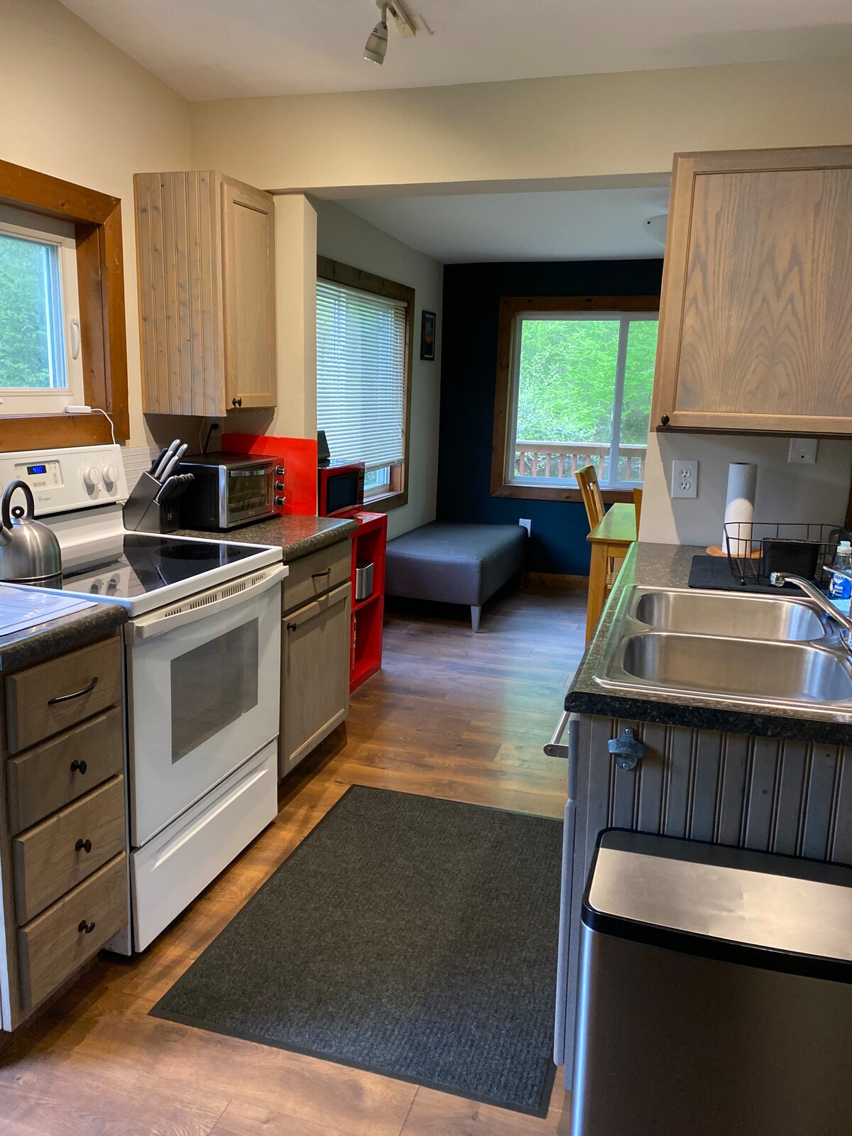 Slakaðu á og skemmtu þér í þessum rúmgóða bústað með öllu sem þú þarft. Við vatnið með fjórum kajökum, róðrarbretti, kanó, róðrarbát og átta árslöngum sem þú getur notað. Ef þú vilt frekar vera á landi er stórt tveggja manna hengirúm staðsett í skugga pílutrésins, útileikja eða njóta stóra þilfarsins þar sem þú getur setið og fengið þér máltíð. Inni er að finna borð-/kortaleiki, DVD-diska og borðtennisborð sem hægt er að breyta í pool-borð eða íshokkí.