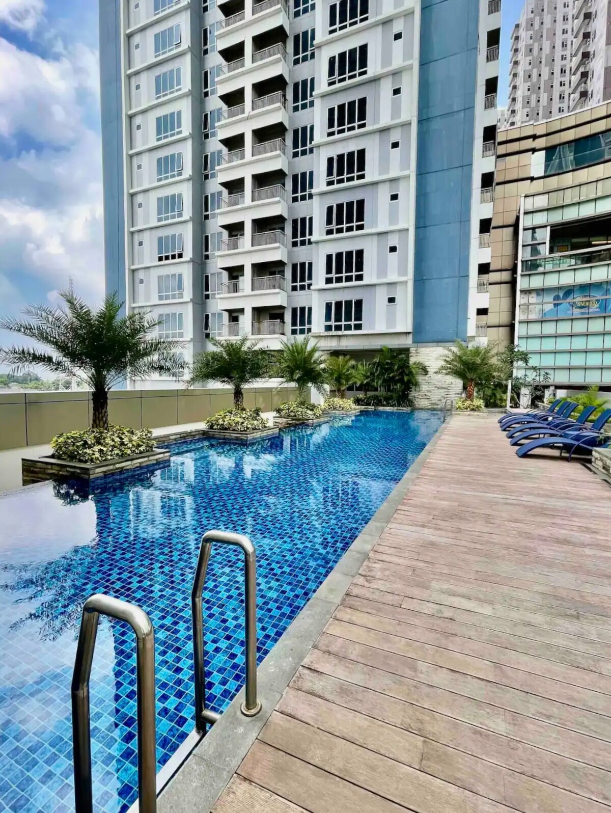 STRATEGIC APARTMENT location close to city center complete with air conditioning, Wi-Fi, TV-Streaming, kitchenette, water heater, swimming pool and gym facilities. Fullkomin eign fyrir einhleypa/paragistingu. Herbergið er með svölum svo að þú getur farið í skoðunarferðir um borgina eða bara fengið þér ferskt loft. Nálægt daglegum þörfum þínum; Restaurant & Cafe, Market, Laundry, ATM Centre eða stafræn prentun innan 500 metra. Herbergið er tilbúið fyrir skammtíma- eða langtímagistingu með gríðarlegum afslætti (>28 dagar)