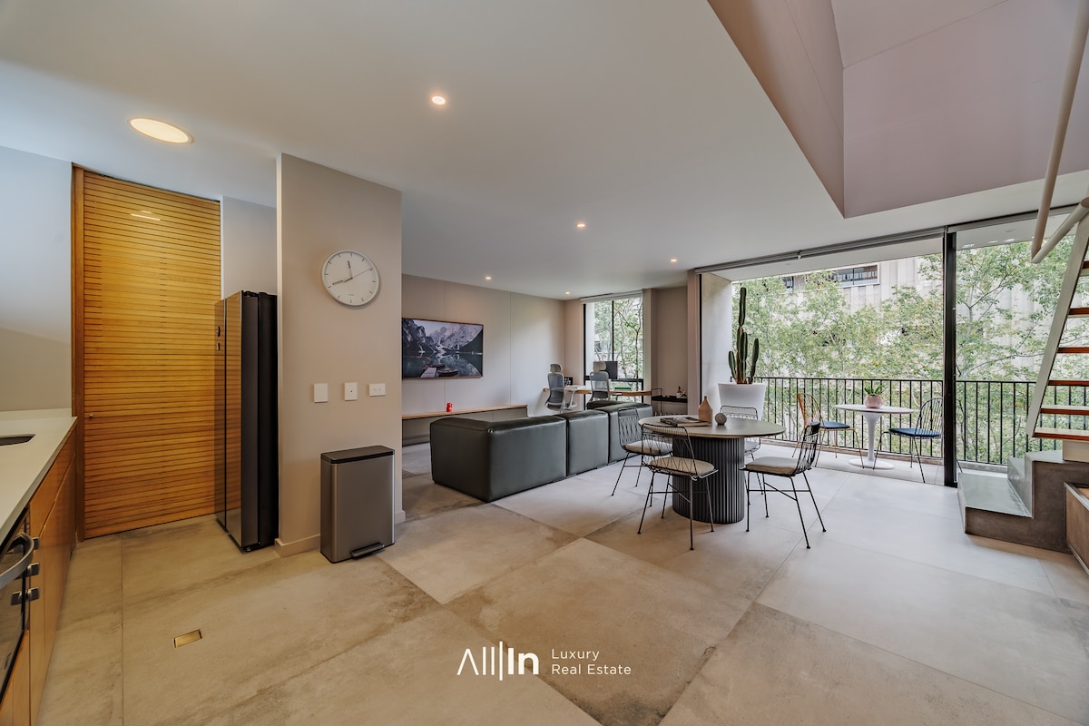 Slappaðu af í þessari rúmgóðu íbúð með 1 svefnherbergi og nútímalegum innréttingum með loftkælingu og einkaverönd með grilli sem hentar fullkomlega til að borða utandyra og slaka á. Njóttu úrvalsþæginda í hinni virtu byggingu Energy Living: magnaðrar endalausrar þaksundlaugar á 22. hæð, fullbúinnar líkamsræktarstöðvar, afslappandi gufubaðs og Alquimista-veitingastaðarins á staðnum allan daginn. Stutt í stórmarkaðinn Carulla og líflega verslunarmiðstöð þar sem finna má yndislega veitingastaði!