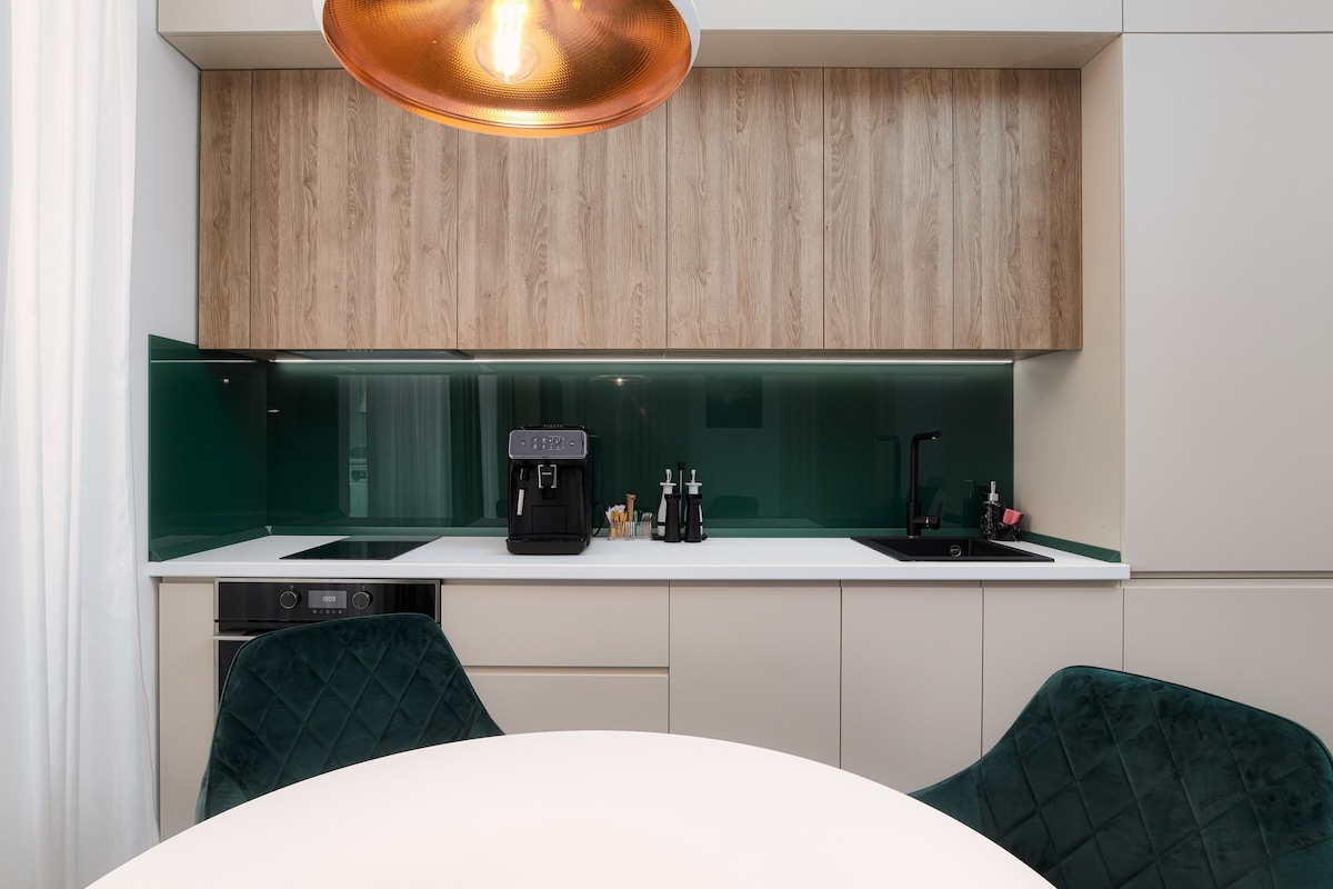 Rúmgóð íbúð yfir 90 m² með sjávarútsýni að framan: 2 svefnherbergi, opið stofusvæði með eldhúsi og borðkrók, 1 nútímabaðherbergi, tilvalið fyrir 5 gesti. Opna stofan sameinar setustofu, fullbúið eldhús og borðstofu og býður upp á nútímalega og rúmgóða hönnun sem er fullkomin til að eiga gæðastundir saman. Svefnherbergin eru hönnuð fyrir hvíld og þægindi og bjóða upp á stórkostlegt útsýni yfir sjóinn, hjónarúm og afslöngunarsvæði. Gestir njóta ókeypis þráðlausrar nettengingar svo að þeir geti verið tengdir alla dvölina.