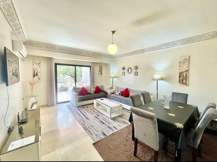 Upplifðu lúxus þessarar nútímalegu íbúðar í hjarta Marrakech. Njóttu mjög stórrar sólbjartrar sundlaugar í fullkomlega öruggu húsnæði. Stílhrein innréttingin býður upp á öll þægindi: ofurhratt ljósleiðaranet, fullbúið eldhús og fágaðar innréttingar. Fullkomið til að kynnast Marrakech í hlýlegu og hágæðaumhverfi. Þessi íbúð uppfyllir allar væntingar þínar til eftirminnilegrar dvalar hvort sem þú ferðast sem par, fjölskylda eða í viðskiptaerindum.