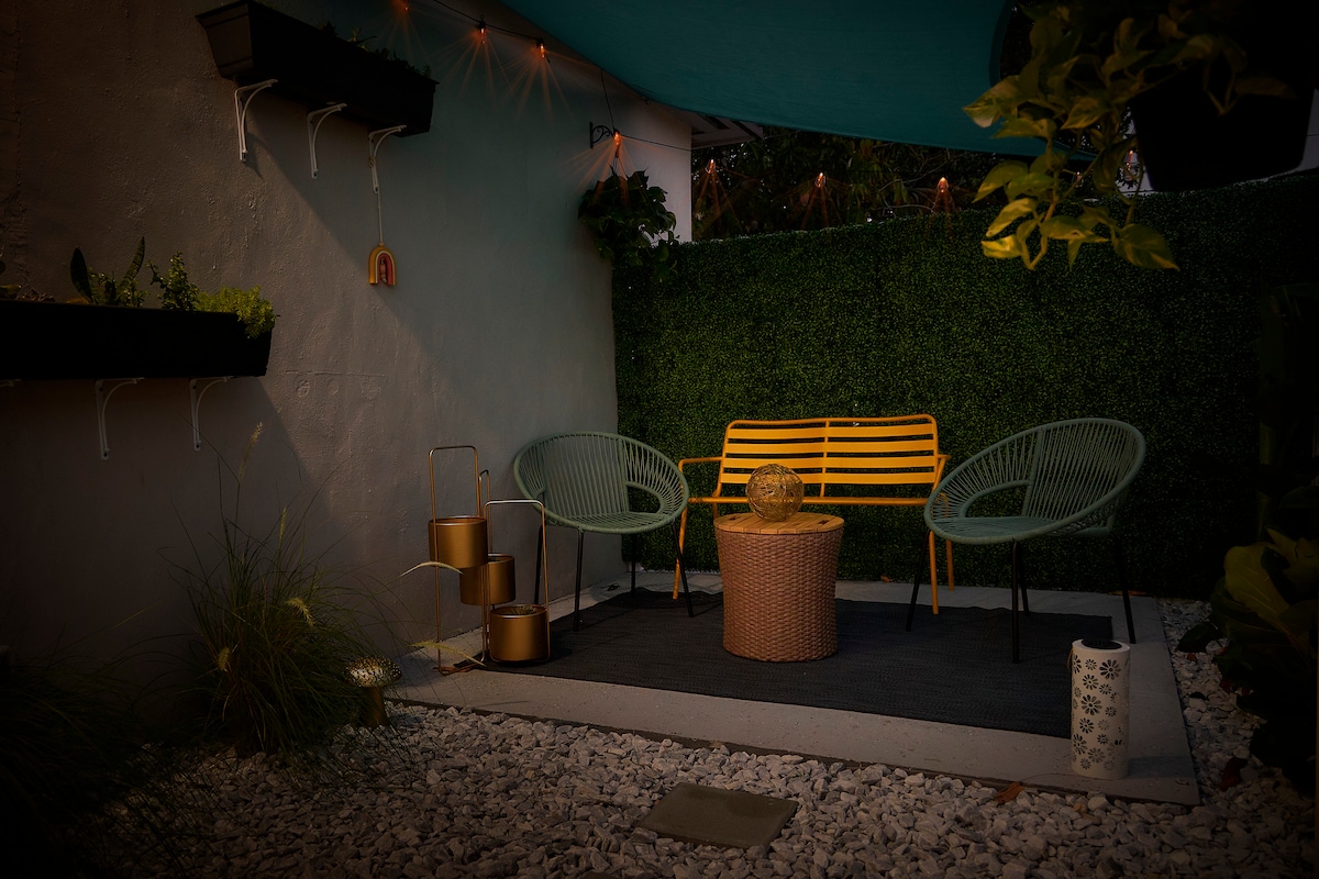 THE PLACE IS NOT SUITABLE FOR CHILDREN, PETS OR MORE THAN 2 PEOPLE. Guest suite with private entrance, located in the front of the main house with a mini-kitchen, full bathroom. PARKING in gated yard. 5 minutes to Artsy Wynwood/Design District , 10 min to MIA Airport, 20 min to South Beach/Key Biscayne, C Grove... Central AC, WIFI, smart TV, queen size bed, linens/towels. Mini-Fridge, Microwave,coffee maker. DUE TO PREVIOUS ISSUES WE DON'T ALLOW PACKAGES DELIVERED TO OUR ADDRESS