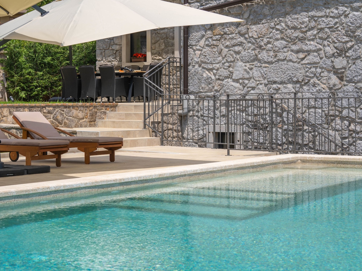 Við vatnið við innganginn að Ístríu. Njóttu 125 fermetra sjálfstæðrar tvíbýlisíbúðar með garði og stórkostlegu útsýni yfir Kvarner-flóa. Aðeins 2 mínútna fjarlægð frá ströndinni, við fætur Učka-fjalls og 6 km frá Opatija – fullkomin blanda af slökun, náttúru og nútímalegum þægindum.