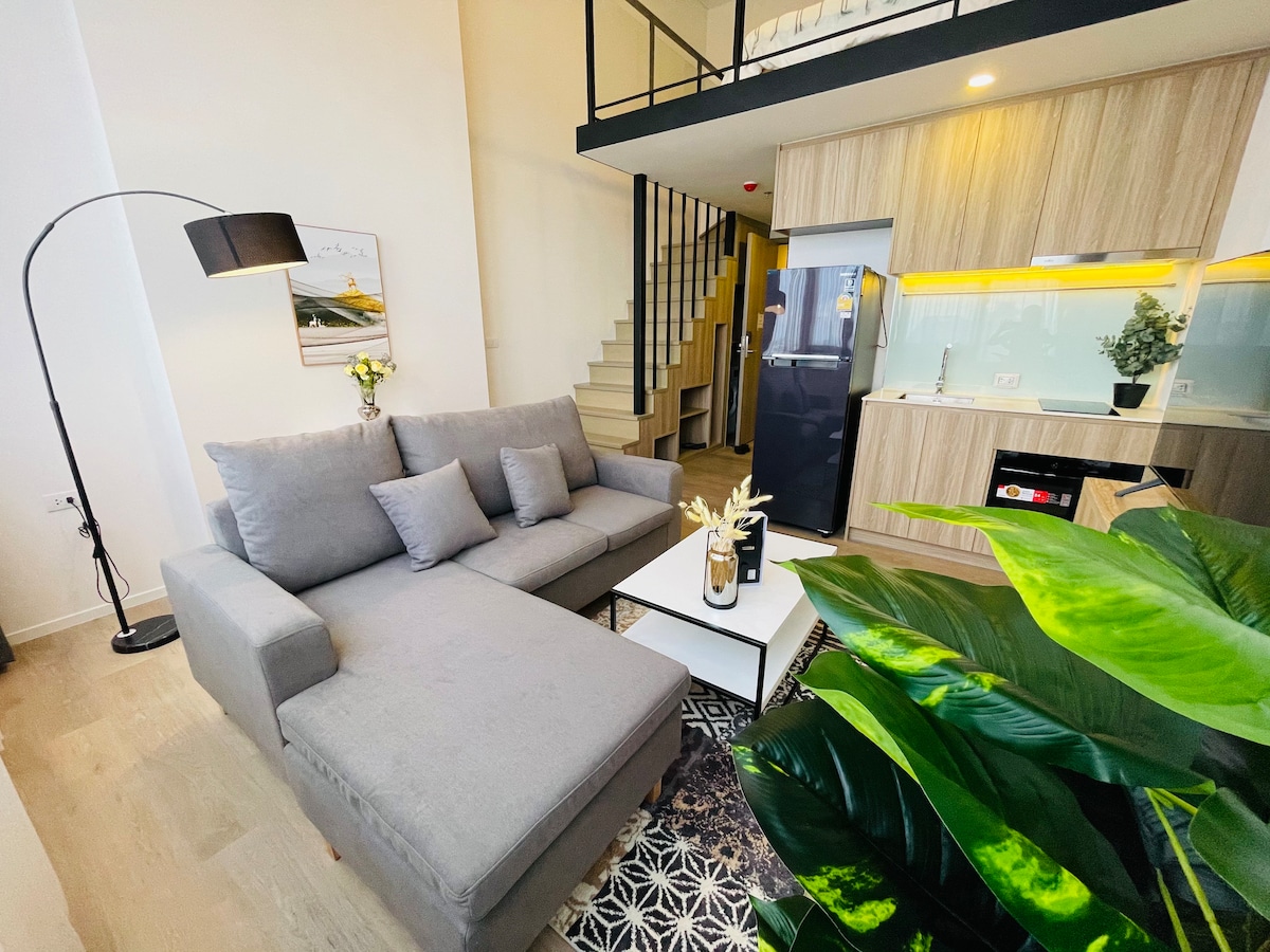 Þér er velkomið að velja og gista í íbúðinni minni og ég vona að þú hafir það gott í Taílandi. Húsið er staðsett í RAMA9, LOFTÍBÚÐ afhent árið 2024.Herbergið er um 70 fermetrar að stærð, þar á meðal tvö svefnherbergi, stofa og borðstofa, eldhús og tvö salerni sem rúma auðveldlega 5 fullorðna️. (1-4 manns þegar gestafjöldinn í bókuninni er 1-4 manns, ef þú þarft að bæta við svefnsófa í stofunni skaltu fylla út fjölda fólks sem 5 við bókun og láta okkur vita sérstaklega eftir bókun að við munum sjá til þess að starfsfólkið búi um svefnsófann fyrir dvölina!️) Innifalið í verði bókunarinnar er notkun á allri eigninni ásamt kostnaði við líkamsræktarstöðina, sundlaugina og samvinnurýmið.