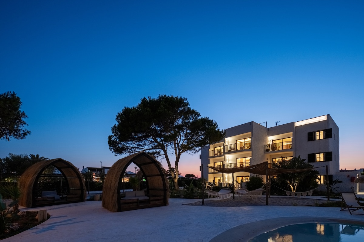 Uppgötvaðu einstaka afdrepið þitt í paradís! Verið velkomin í lúxusíbúðirnar okkar sem eru fulluppgerðar vegna þæginda, stíls og afslöppunar. Staðsett á heillandi svæði nálægt börum, verslunum og meira að segja vatnagarði. Njóttu einkasundlaugar aðeins fyrir gesti. Aðeins 3 km frá Ciutadella, rík af sögu og sjarma. Skoðaðu þrjú kristaltærar víkur í nokkurra skrefa fjarlægð og meira en 50 einstakar strendur í kringum eyjuna. Náttúra, lúxus og staðsetning; allt á einum stað.