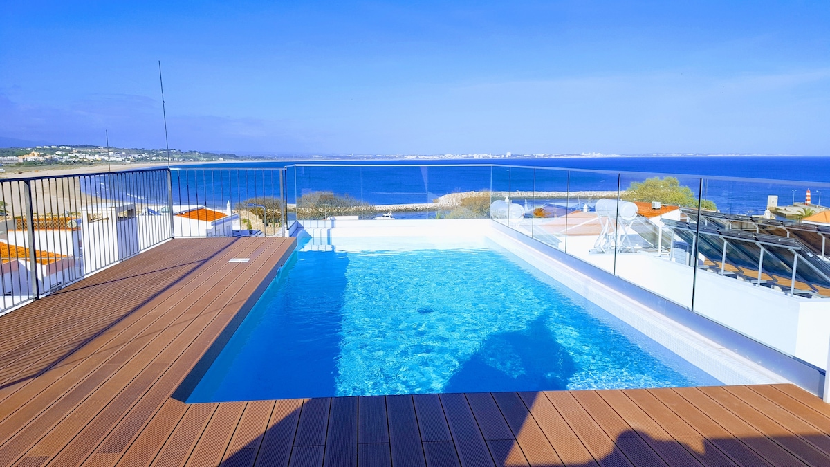Lagos Sunrise Óviðjafnanlegt útsýni Óviðjafnanleg staðsetning. Stórkostleg 160 fermetra íbúð, staðsett innan um sögufræga borgarmúrinn í Lagos á efstu tveimur hæðum hefðbundins raðhúss, fylgstu með bátunum fara inn í ána og áfram inn í Lagos Marina, með útsýni yfir alla Meia Praia-ströndina og klettana alla leið til Lagoa og hlustað er á sjóinn við ströndina. Það verður ekki betra. 2 mínútna göngufjarlægð frá næturlífi borgarinnar, veitingastöðum og börum en engu að síður mjög hljóðlátur hluti af sögufrægu borginni.