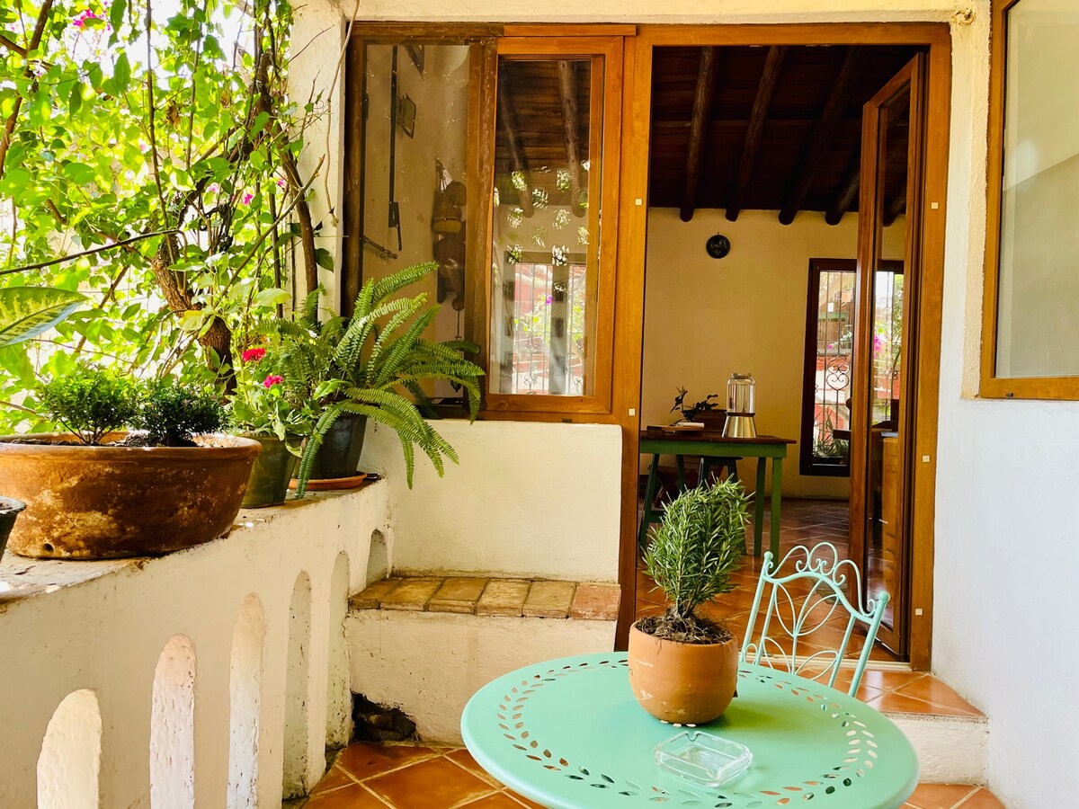 Finndu rómantíska frístað í Oaxaca! Þessi íbúð, sem er full af staðbundinni menningu, er með loftkælingu og fallegan garð, tilvalinn fyrir pör. Hún er á frábærum stað til að skoða borgina og býður upp á þægindi fyrir eftirminnilega dvöl. Upplifðu töfra Oaxaca á þessum sérstaka stað.