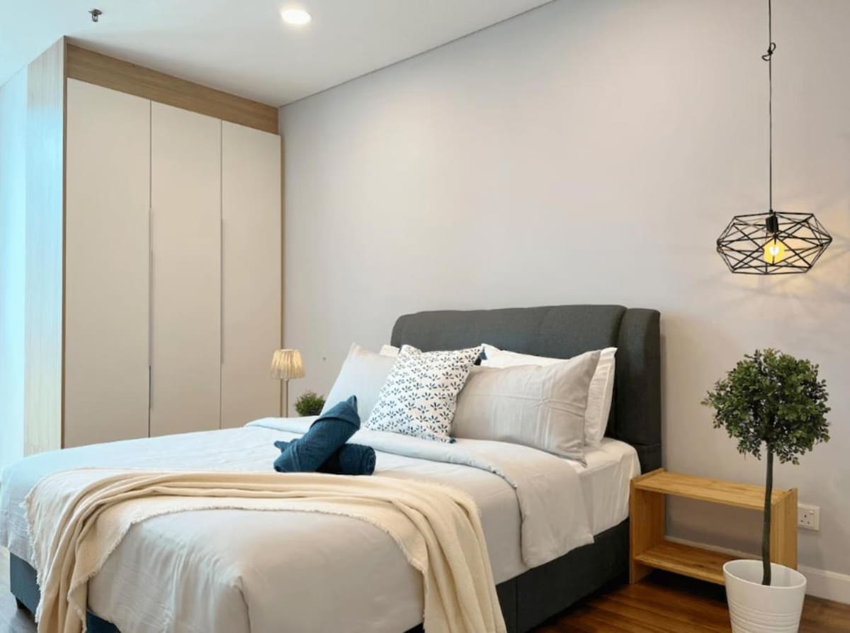 📍Pertama Residency Verið velkomin í New Bnb - Moonrise City! Þetta stúdíó er nýlega sett upp með mikilli ást, sameinar nútímalegar skreytingar og nútímaþægindi og upplifun sem allir geta notið sérstaklega með ástinni þinni og 120” skjávarpa með Netflix. Þessi einstaki staður hefur sinn stíl, hann býður upp á notalegt, hreint, rólegt og hressandi dvalarumhverfi fyrir pör. Komdu og upplifðu í nýja bnb! Sjáumst.
