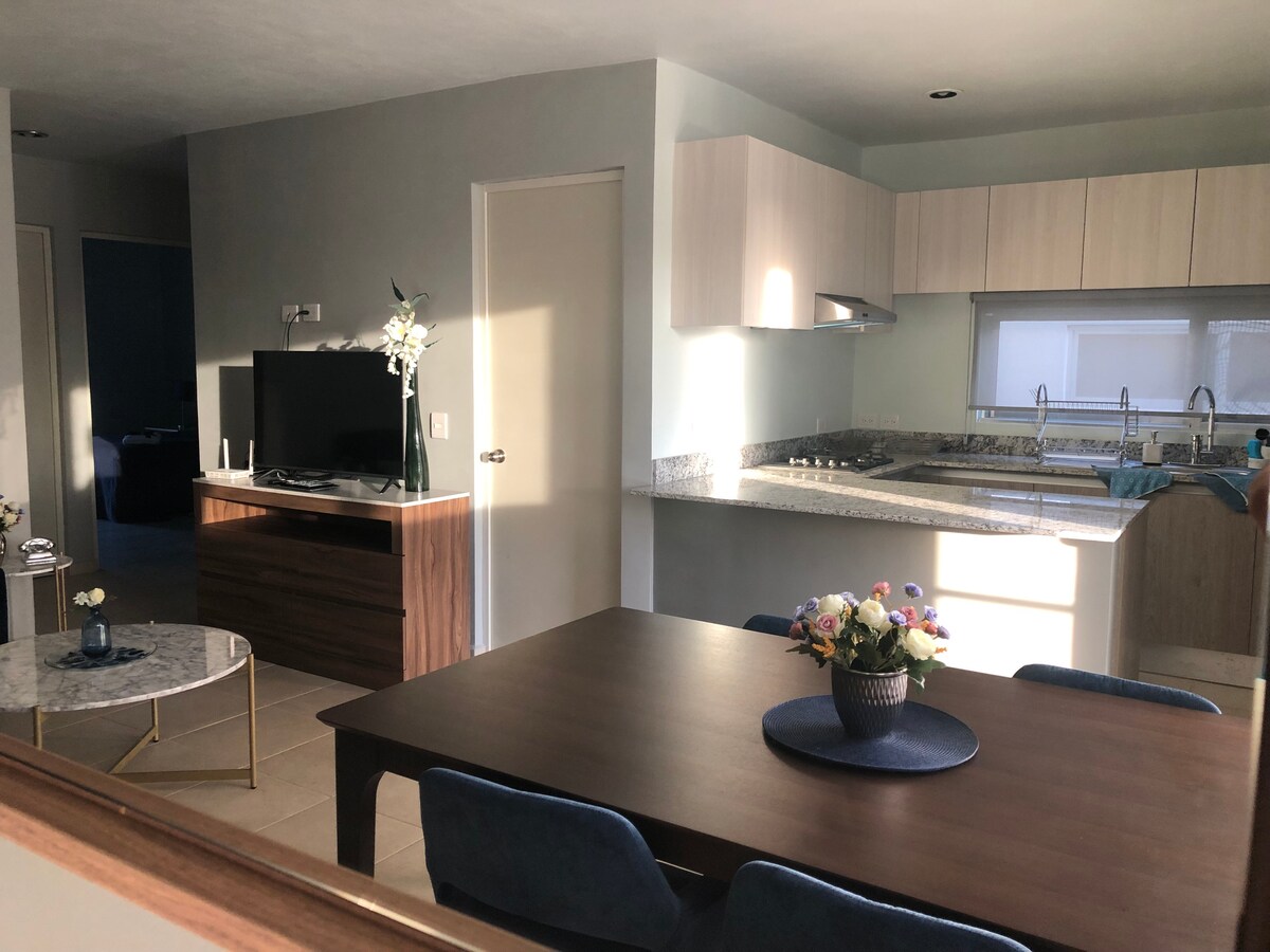 „Vinnuferð með reikning í boði.“ Nútímaleg íbúð í Altabrisa, tilvalin fyrir litlar fjölskyldur allt að 3 manns, þar er: Herbergi með 1 hjónarúmi og 1 einstaklingsrúmi, Snjallsjónvarp þar sem þú getur notið uppáhaldsþáttanna þinna og kvikmynda. Lítil einkaverönd Innifalið: Fullbúið baðherbergi með heitu vatni. Fullbúið eldhús til að útbúa uppáhaldsmáltíðirnar þínar. Stofa og borðstofa með loftkælingu Bílskúr Háhraða nettenging, tilvalin fyrir vinnu