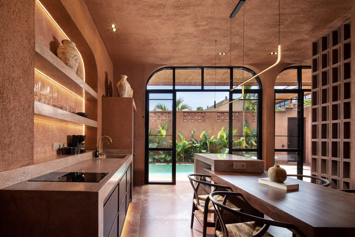 Hlýtt viður. Opinn húsagarður. Tveggja svefnherbergja villa með sundlaug í miðjunni þar sem öll rými snúa að innri hliðinni og truflun er ekki til staðar. Morgnarnir eru afslappaðir, síðdegið er í skugganum og kvöldin ná náttúrulegu jafnvægi þegar birtan dregur úr yfir húsagarðinum. Staðsett í Kerobokan á milli Seminyak og Canggu, kaffihús og strendur eru í um 10–15 mínútna fjarlægð með vespu. Og þegar þú kemur aftur er allt rólegt og miðlægt.