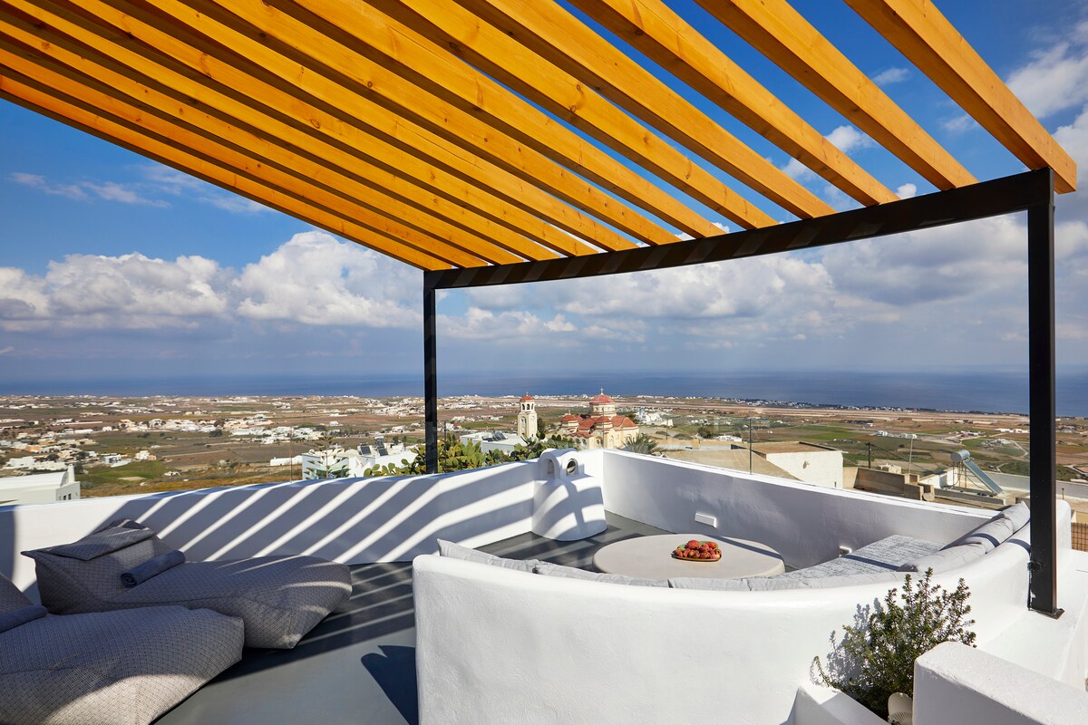 The exceptional space of Terra e Lavoro in Santorini was ideally designed to offer a personalized experience of enjoyment to those seeking a luxurious retreat on their vacation. The Terra e Lavoro luxurious apartment in Exo Gonia is a modern Villa in Santorini with traditional architecture, ready to welcome its guests and lead them to unique moments of relaxation.