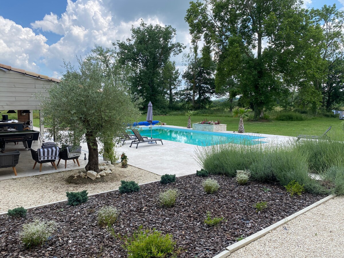 Hreiðrað um sig innan um vínekrur með óviðjafnanlegt útsýni niður að nálægum skógum. Þetta fallega steinhús býður upp á nútímalegar innréttingar með öllu sem þarf til að komast í burtu frá landinu. Tilvalinn staður fyrir dagsferðir til Bordeaux, Bergerac, St Emilion eða Arcachon, Biaritz eða Saint Jean de Luz ef þú vilt heimsækja ströndina.