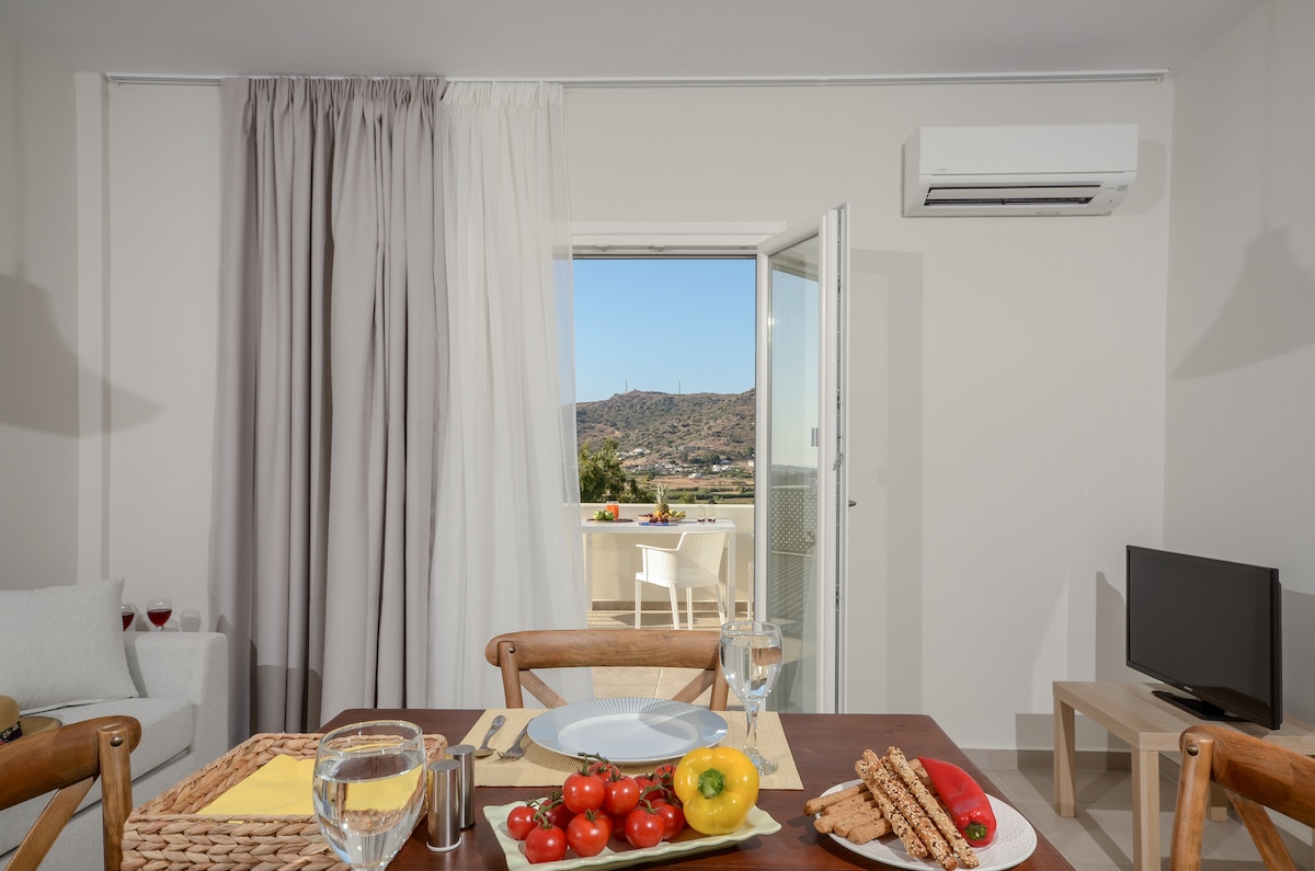 Í Naxos-bæ með mögnuðu útsýni út að Eyjahafinu bjóðum við gestum upp á einstaka afslappaða upplifun. Í seilingarfjarlægð frá fræga PORTARA-kastalanum og Feneyska kastalanum. Hugmyndafræði okkar er að bjóða upp á fyrsta flokks gestrisni ásamt óviðjafnanlegu næði. Lúxusíbúðin okkar býður upp á mikil þægindi ásamt glæsileikastíl og einstakri grískri gestrisni. Hlýlegar lágmarkslínur skapa afslappandi andrúmsloft.