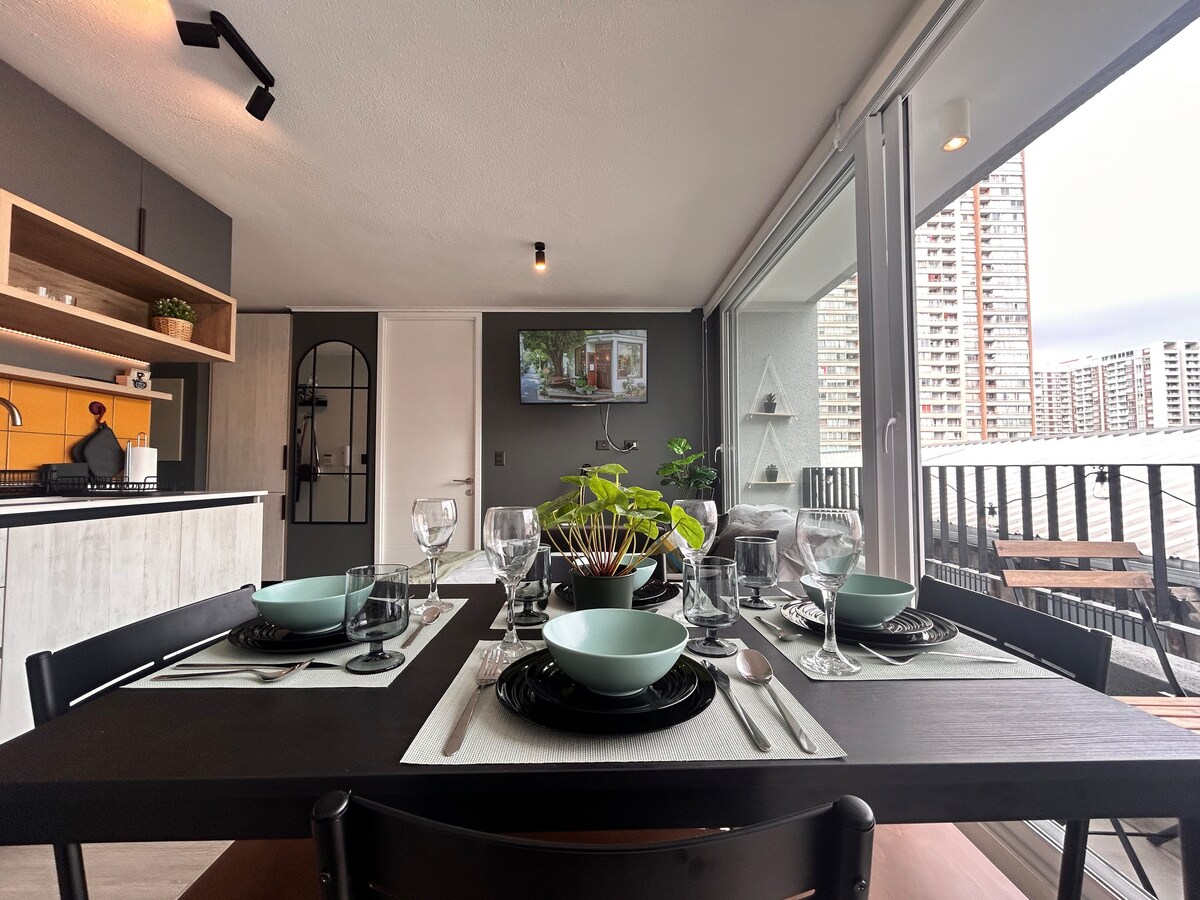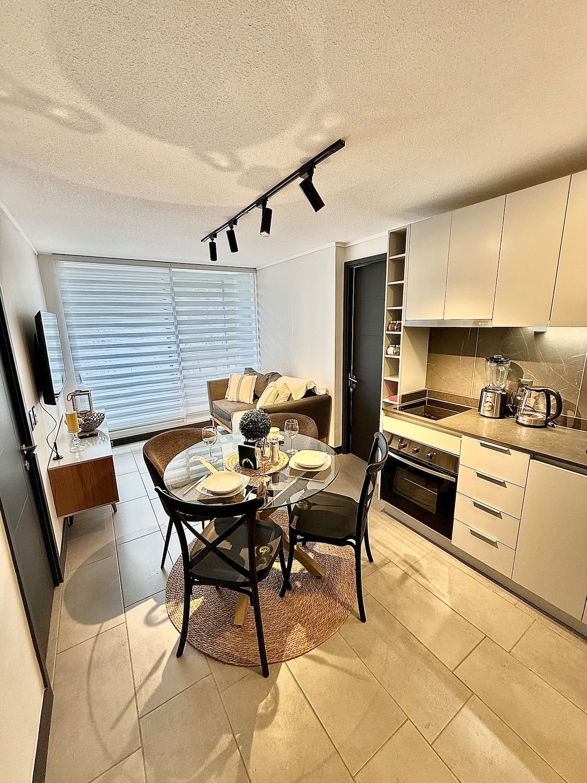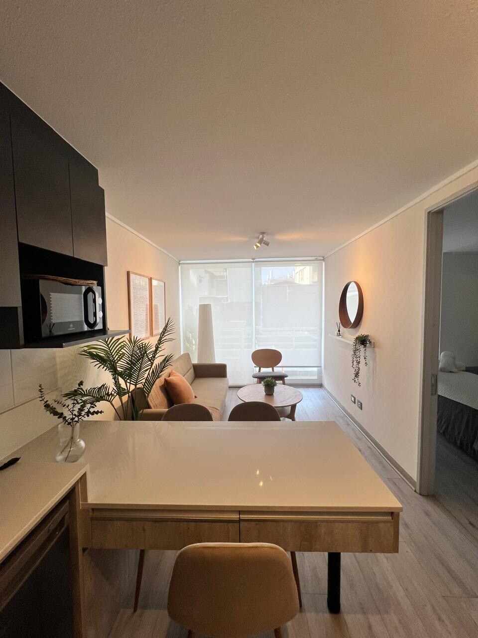Moderno y acogedor departamento con aire acondicionado en el corazón de Santiago. A pasos del metro y del Centro Histórico, rodeado de museos, mercados y restaurantes. Cama king, cocina equipada, balcón y wifi rápido, ideal para viajes o estadías largas. Edificio seguro con conserje 24/7. Atención personalizada, check-in flexible y recomendaciones locales para que disfrutes la ciudad como un residente, con comodidad y tranquilidad.