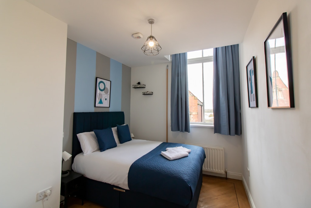 DWELL Living færir þér þessa tveggja herbergja íbúð í miðbæ Newcastle Upon Tyne. Þessi íbúð er í þægilegu göngufæri frá aðallestarstöð Newcastle og býður upp á allar nauðsynjar sem þú gætir þurft á að halda meðan á dvöl þinni stendur. Rýmið á 4. hæð rúmar allt að 6 gesti með sturtu- og eldhúsaðstöðu og nýþvegnu líni + handklæðum. Þessi íbúð er á viðráðanlegu verði og hagnýt og er frábær valkostur fyrir þá sem vilja gista í miðbænum með greiðan aðgang að verslunum, veitingastöðum og næturlífi.