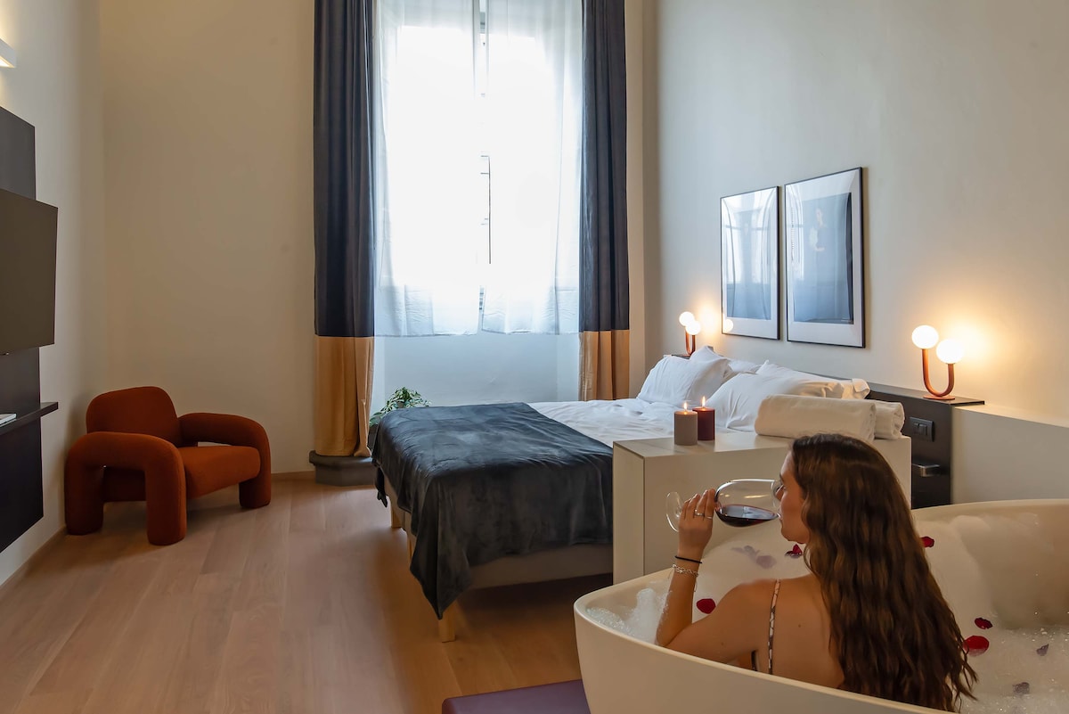 Endurreisnin er innblásin af mest heillandi listatímabili mannkynssögunnar og er virðingarvottur við glæsileika, samhljóm og handverk sem skilgreindi gullöldina. Stígðu inn og láttu flytja þig. Þú munt ekki aðeins sjá endurreisnina — þú munt finna fyrir henni í andrúmsloftinu, birtunni og sálinni í hverju rými. Kynntu þér einnig íbúðina Renaissance & Baroque: https://www.airbnb.it/rooms/30229178?guests=1&adults=1&s=67&unique_share_id=c0087742-7346-4511-9bcd-198bbe23c1b4
