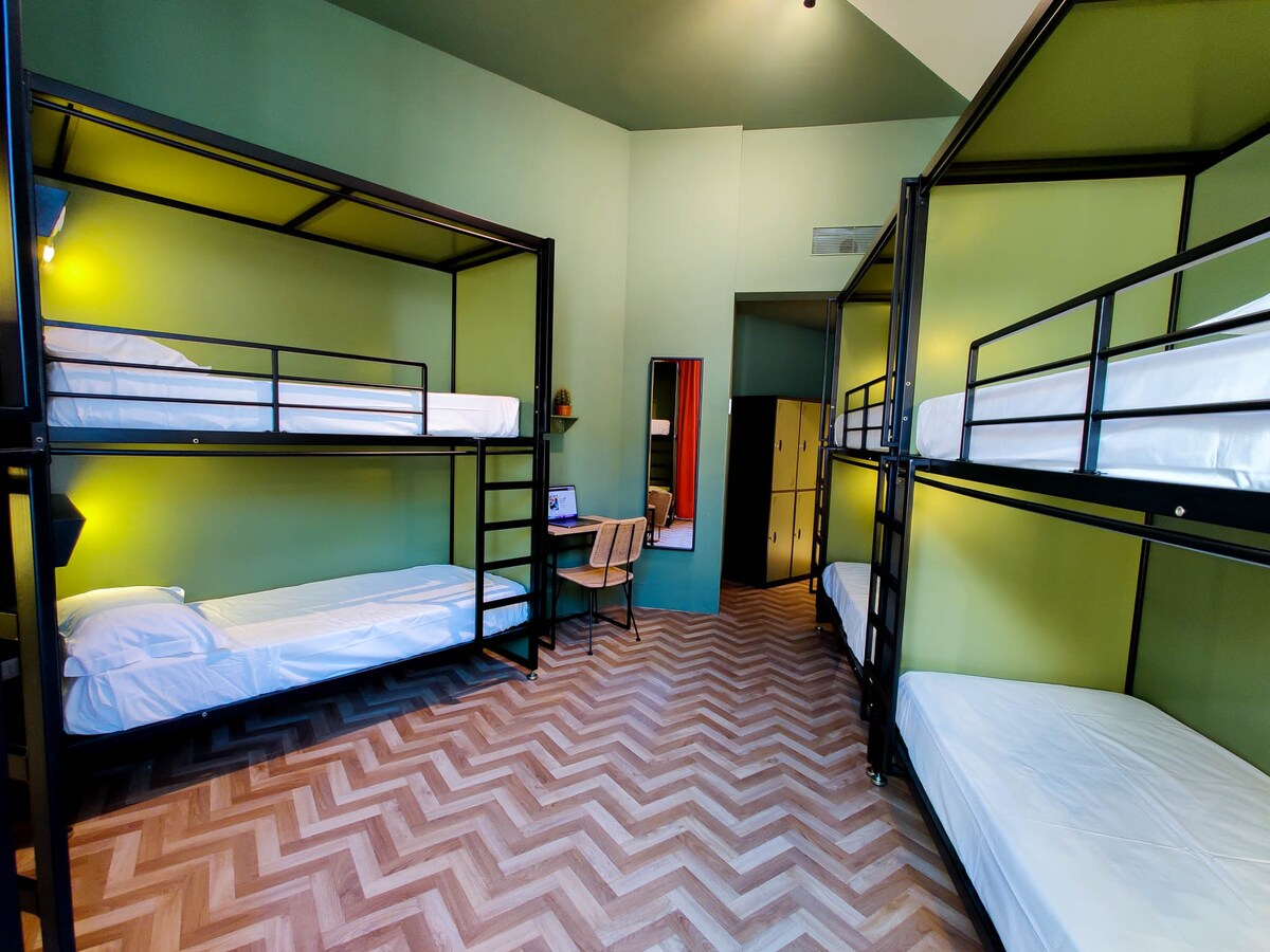 Private room for 6 guests with 3 bunk beds - Private bathroom and shower - Air conditioning - Free Linen Included - Free Towels - Free personal security lockers - Free WiFi - Free Access to the Club - Free City Maps - Free Tours - 24 Hour Reception - Paid Parking available - Bar - Housekeeping - Swimming Pool - Coworking