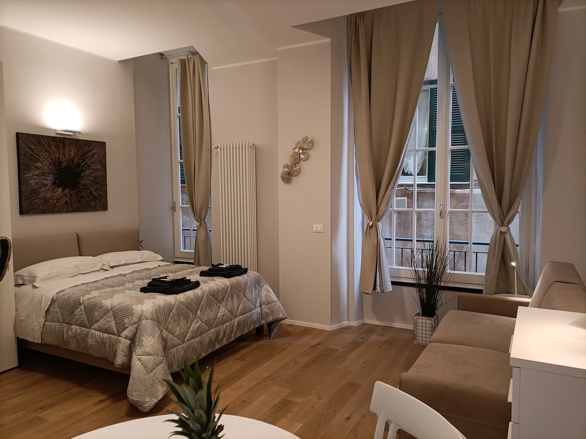 Húsgögnin eru ný, þar er lítið en vel búið eldhús. The double wall bed is standard size and is very comfortable. Í stofunni er vinnurými með skrifborði. Á baðherberginu geta gestir sem þurfa á því að halda einnig notað þvottavél. Háhraða þráðlaust net með ljósleiðara. Íbúðin er með útsýni yfir fjölfarna götu í Genúa en íbúðin er búin nýjum gluggum gegn hávaða. Gestir okkar finna einnig eyrnatappa í gjafasettinu.