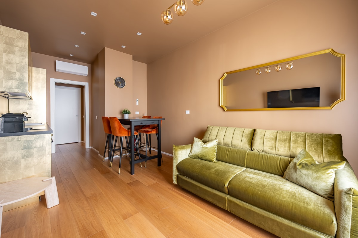 Una particolare soluzione disegnata e studiata in ogni minimo dettaglio con oggetti di design. Adatta per due o quattro persone in due letti: uno matrimoniale standard da 160 cm e uno alla francese da 140. Siamo in centro nel vitale quartiere di Porta Venezia a ridosso dei Giardini Pubblici, vicino alla metropolitana rossa in direzione Rho Fiera, vicino alla linea gialla e vicino alla stazione centrale in una via tranquilla al piano terra con accesso diretto da strada.